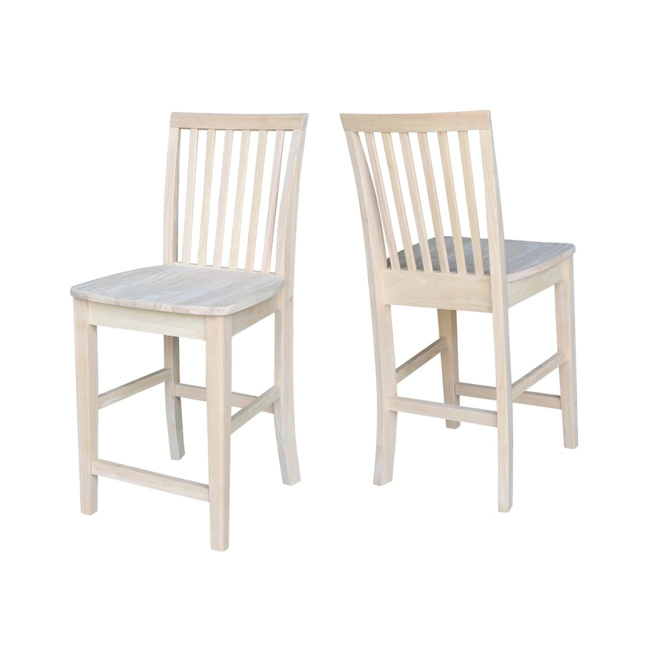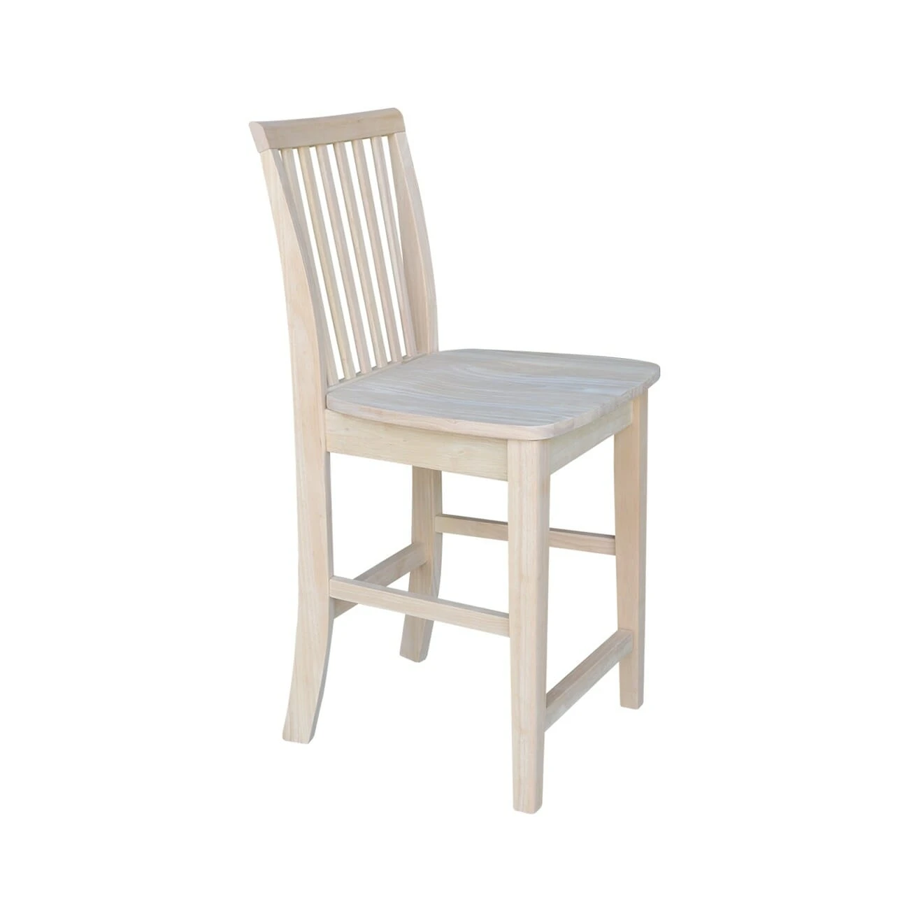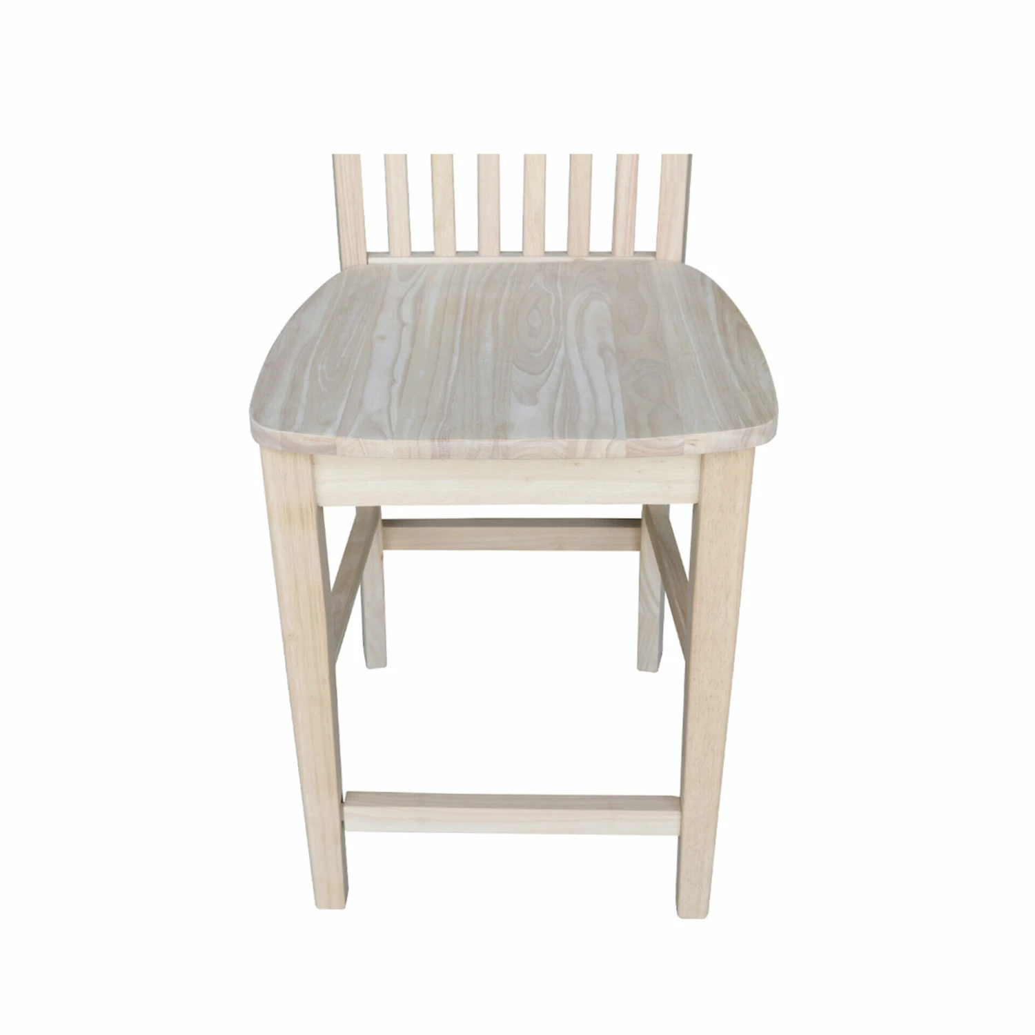 The 265-24 24″ Mission Counter Stool offers a classic design that will never go out of style. With a seat height of 24″, this stool fits perfectly at your 36″ tall counter or table. The Mission Counter stool features a traditional, slat-back design that compliments any kitchen or dining space. It is made from solid, eco-friendly Parawood in order to ensure strength and durability. Furthermore, the stretchers are both screwed and glued in place to protect your stool from strenuous and everyday use. This counter stool is available unfinished, but can be easily stained or painted as you like to match your existing furniture. It is also available in a 30″ bar height: 265-30 Mission Bar Stool