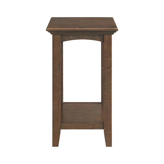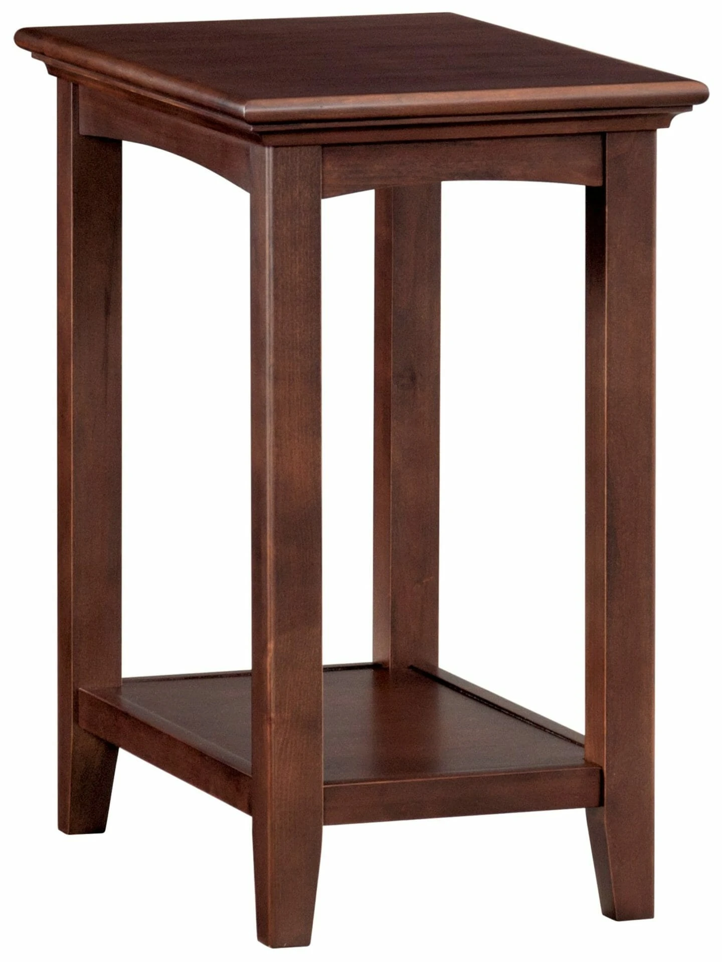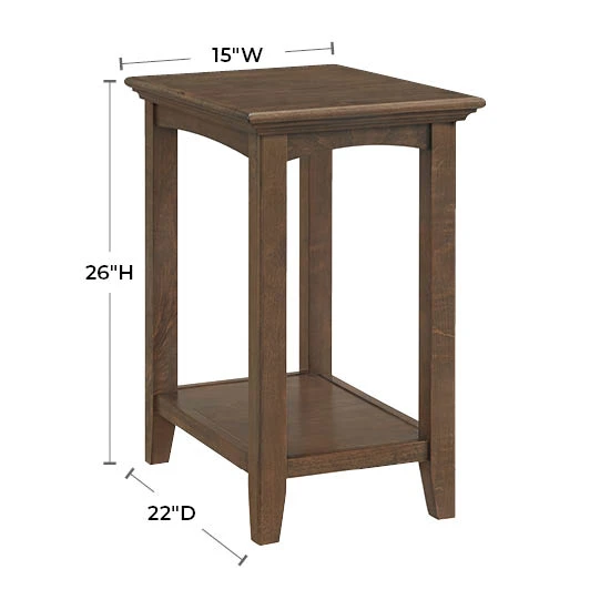 The McKenzie Accent Table is the perfect addition for your any room in your home. It features mortise and tenon joinery in order to ensure structural strength and stability. The simple design allows you to use this versatile piece as a side table, a nightstand, or as an accent piece. It offers a solid wood plank top and one fixed lower shelf for additional storage. This table ships factory finished only in three gorgeous stains: Java, Glazed Antique Cherry, and Pecan. The finish provides extra protection and resists most liquids and heat for up to 24 hours. Combine this beautiful accent table with any of the McKenzie occasional tables, media pieces, or bookcases.