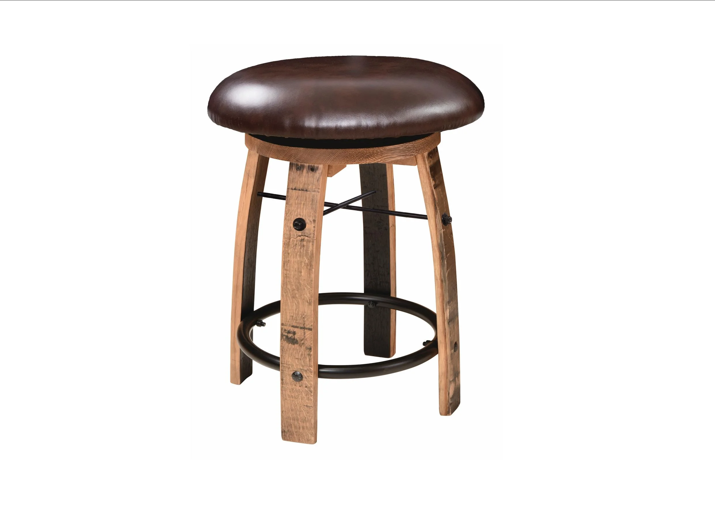 Made from solid barrel wood, this stool is available in 2 heights: 24 or 30 inches.