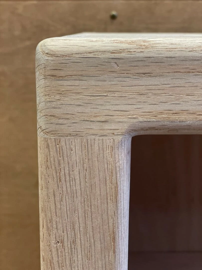They have a solid Oak face and cabinet-grade ply for the top, sides, and shelves to allow for any swelling and shrinking without bowing or cracking.