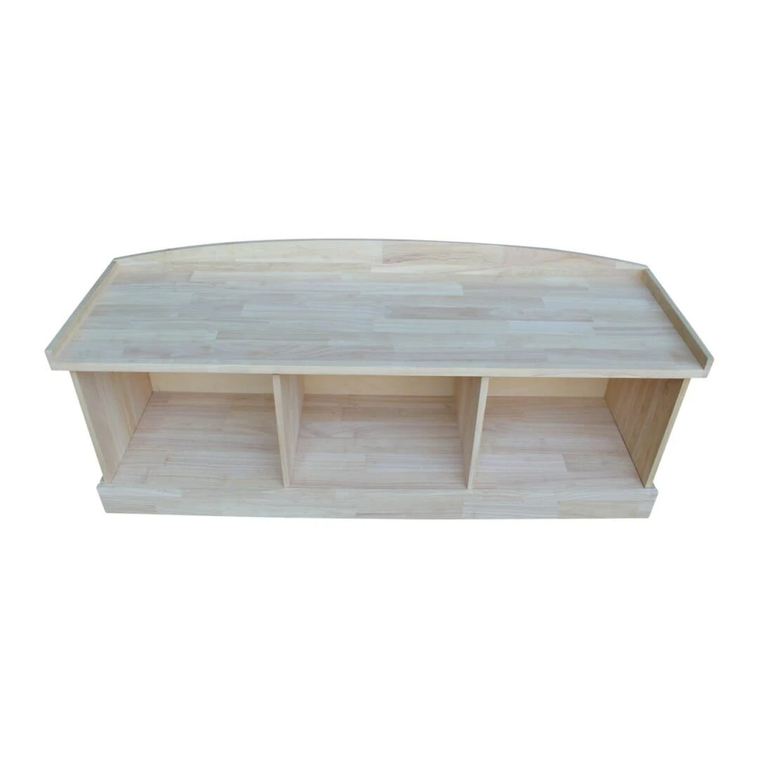 The 50″ Wide Entry Bench offers the perfect storage solution for your entryway or mudroom. The cubbies provide excellent compartmentalized storage and also work well with baskets in order to conceal smaller items. In addition, the top of the bench features a lip on the back and sides allowing you to use a cushion if desired. This bench stands alone or can be placed below the SH-150 Entry Shelf for a complete storage system. It also works well in a kid’s room to store books on the bottom and create a comfortable reading space on top. Made from solid, eco-friendly Parawood, this bench ensures maximum strength and durability. It ships unfinished and can be easily stained or painted to match your existing furniture.