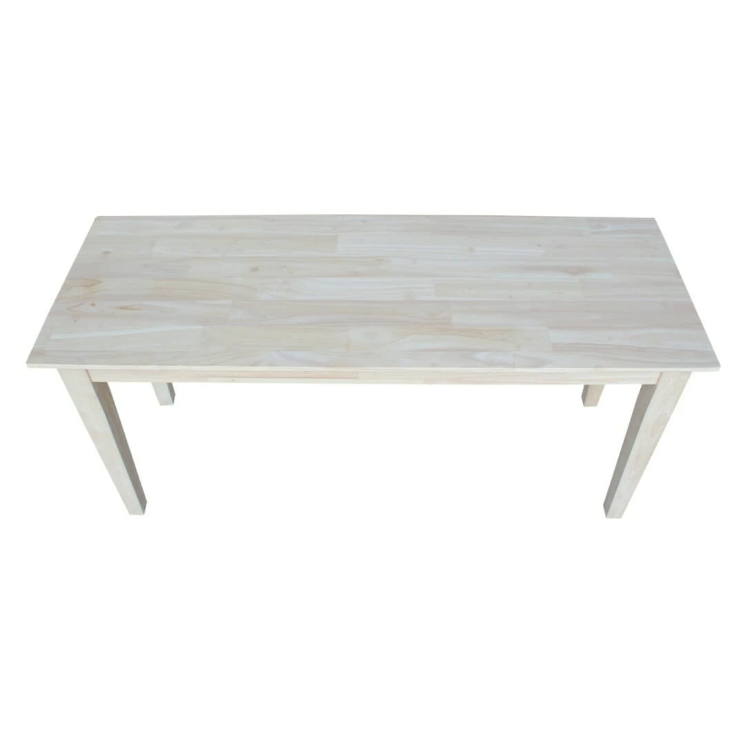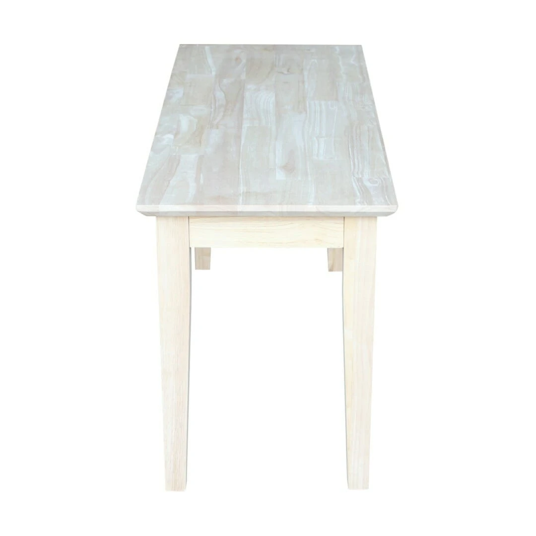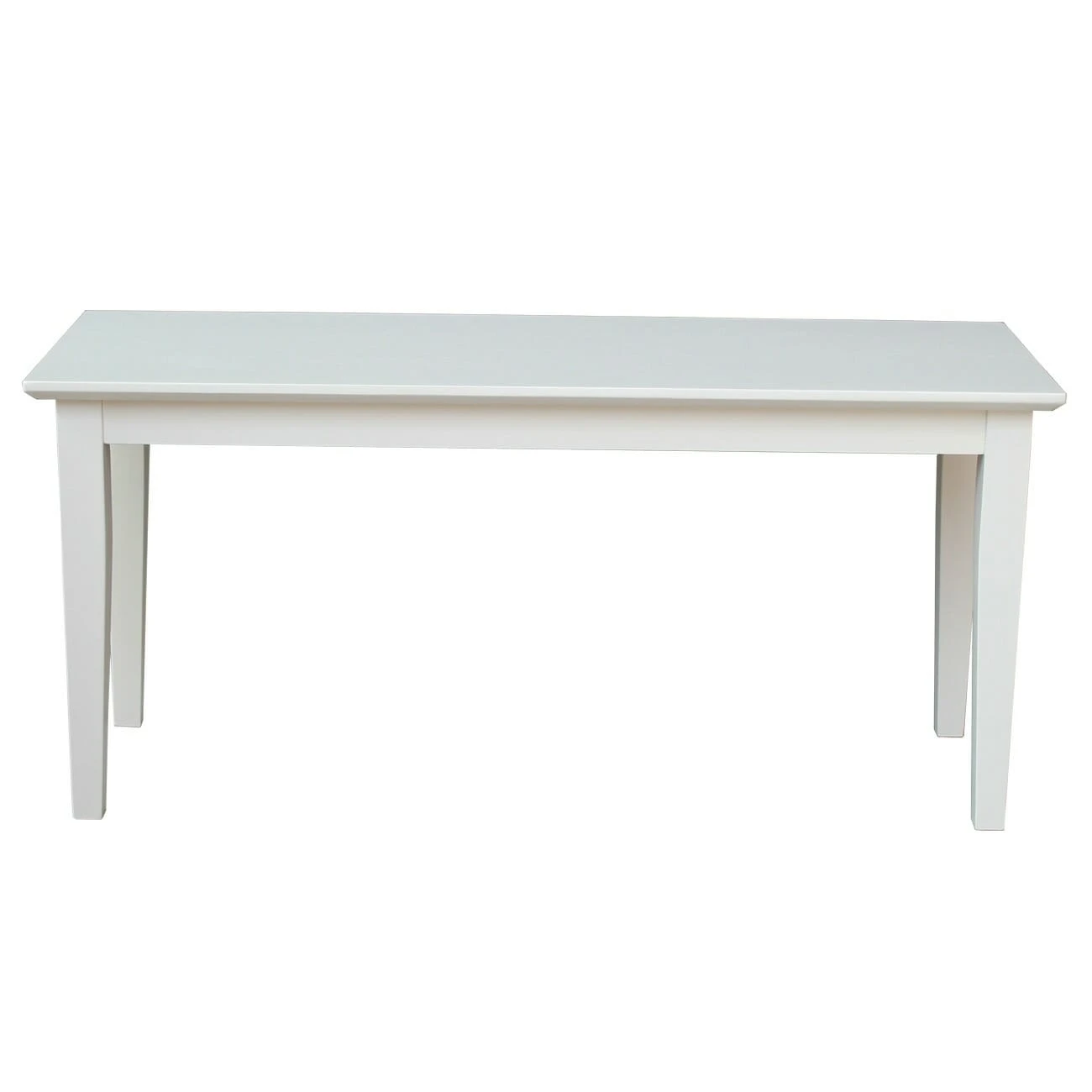 This Shaker Bench offers a timeless and versatile design that works well in a modern farmhouse or an urban loft. It features shaker-style legs and a reverse bevel edge top. At 39 inches long, this bench tucks under a 48-inch long table with ease. It is 18 inches tall, and as a result, works with your standard 30 inch tall dinner table. In addition, the clean and simple design allows for use with any decor in any room in your home. Made from solid, eco-friendly Parawood , this bench ensures maximum strength and durability. It ships unfinished or in your choice of three factory finishes — Pure White, Taupe Gray, and Black. The unfinished bench can be easily stained or painted to match your existing furniture.