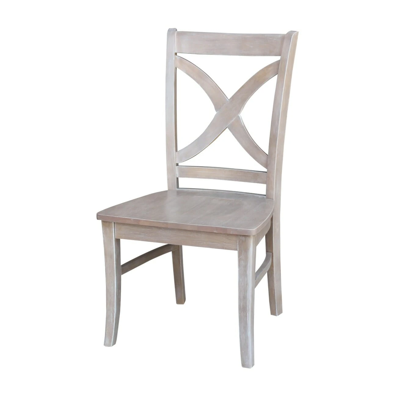 The C-14 Vineyard Chair feature a gentle, curved X back and slight curve on the front legs. This eye-catching design is both versatile and comfortable and provides an elegant look for your dining space. It is made from solid, eco-friendly Parawood in order to ensure maximum strength and durability. Furthermore, the stretchers are both screwed and glued in place to protect your chair from strenuous and everyday use. The Vineyard chair is available unfinished or in your choice of four custom finishes: Heather Gray & White, Weathered Gray, Espresso, and Black & Coal. This chair is also available with an upholstered seat (Upholstered Vineyard Chair ). This chair is sold in a set of 2; however, single chairs are available for purchase in our retail store.