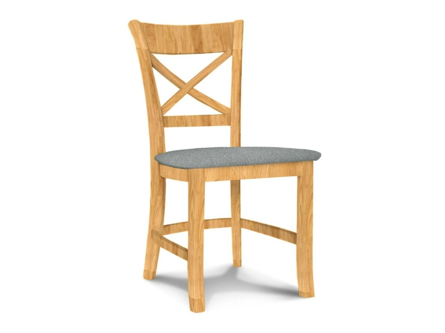 The Upholstered Charlotte Chair offers subtle elegance with a curved back, legs, and stretcher. It is perfect for a smaller dinette table or desk. The wide seat and X back offer excellent comfort. This chair is made from solid, eco-friendly Parawood in order to ensure maximum strength and durability. Furthermore, the leg stretchers are both screwed and glued in place to protect your chair from strenuous and everyday use. This chair is available unfinished with your choice of several fabric options. The picture gallery allows viewing of several fabrics on the chair. Click here to view additional fabric options: Standard Fabric Options. This chair is also available with a standard wood seat: C-31. The Charlotte chair is sold in a set of 2; however, single chairs are available for purchase in our retail store.