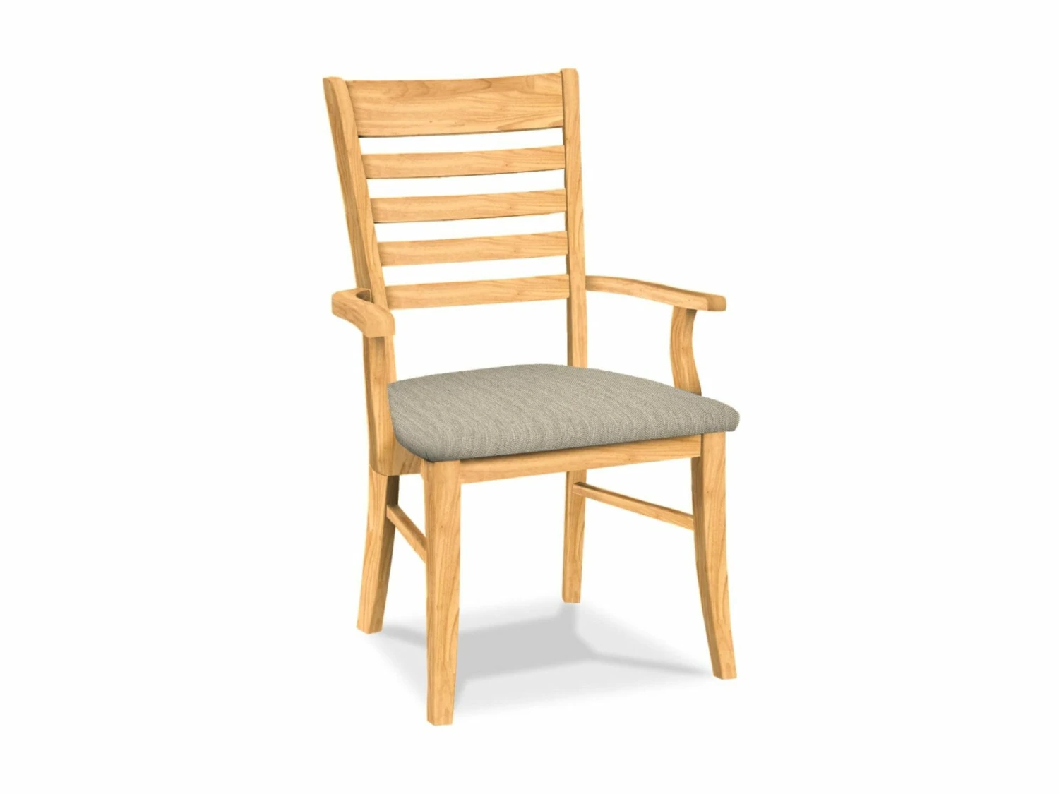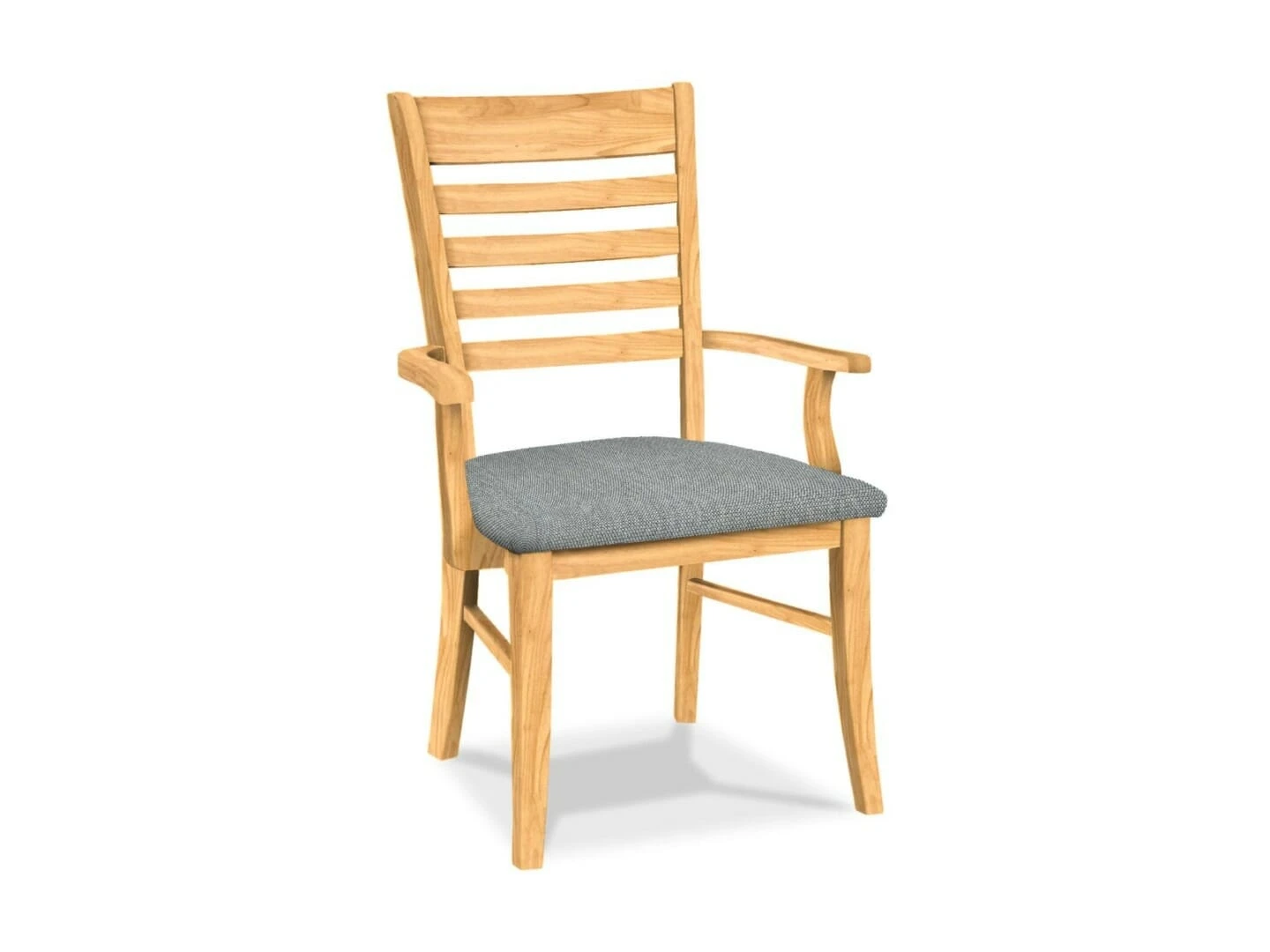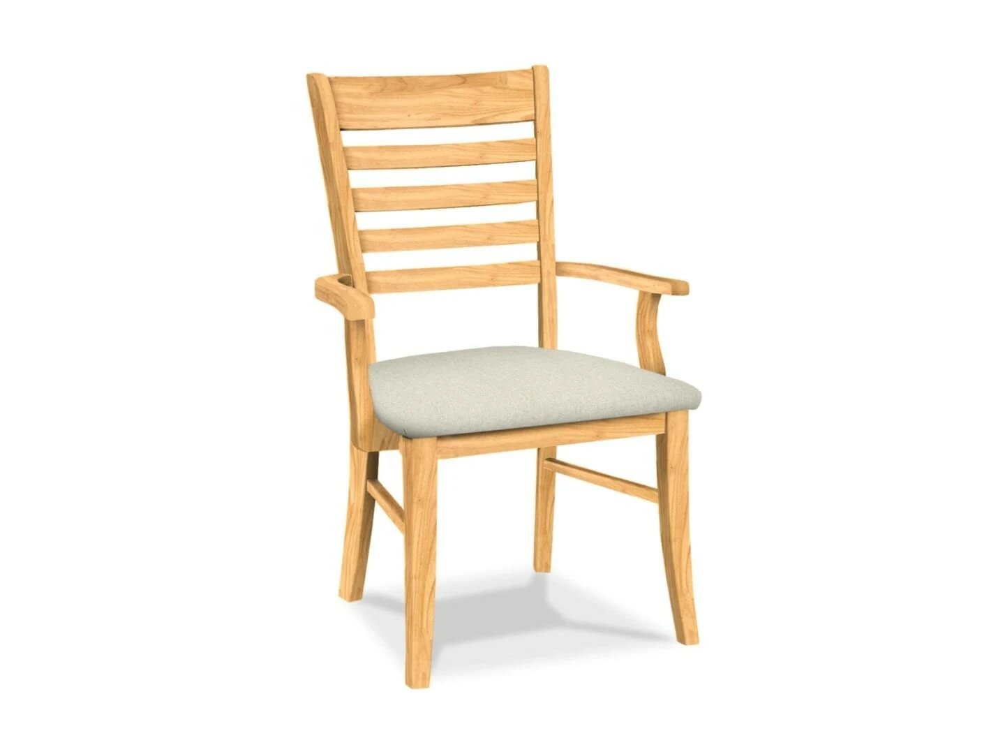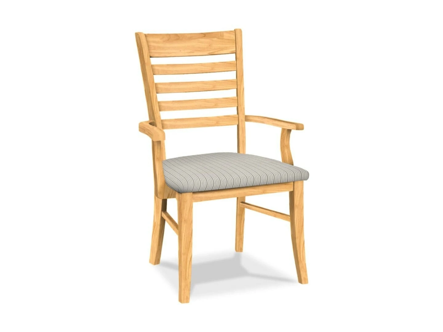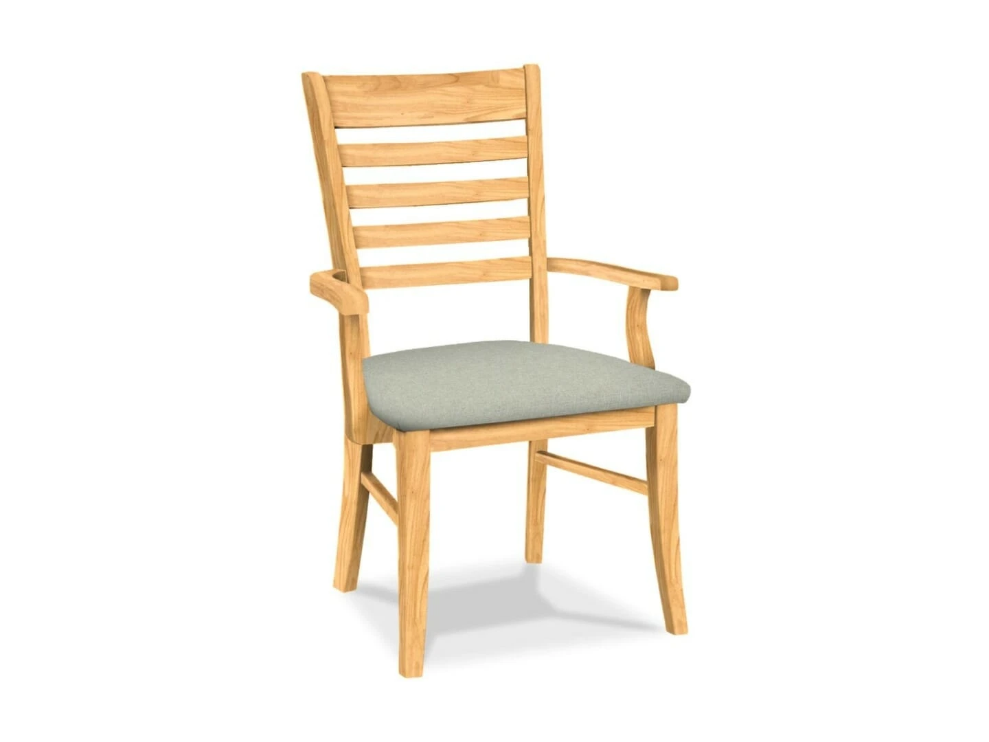 The Roma Arm Chair features a wide seat and a very supportive back. One of the largest chairs we offer, the wide back and seat and addition of side arms provides maximum comfort and support. This chair works well around a large dining table. It is made from solid, eco-friendly Parawood in order to ensure maximum strength and durability. Furthermore, the leg stretchers are both screwed and glued in place to protect your chair from strenuous and everyday use. The Roma Chair is available unfinished with your choice of several fabric options. The picture gallery allows viewing of several fabrics on the chair. Click here to view additional fabric options: Standard Fabric Options. This chair is also available with a standard wood seat: Roma Arm Chair.