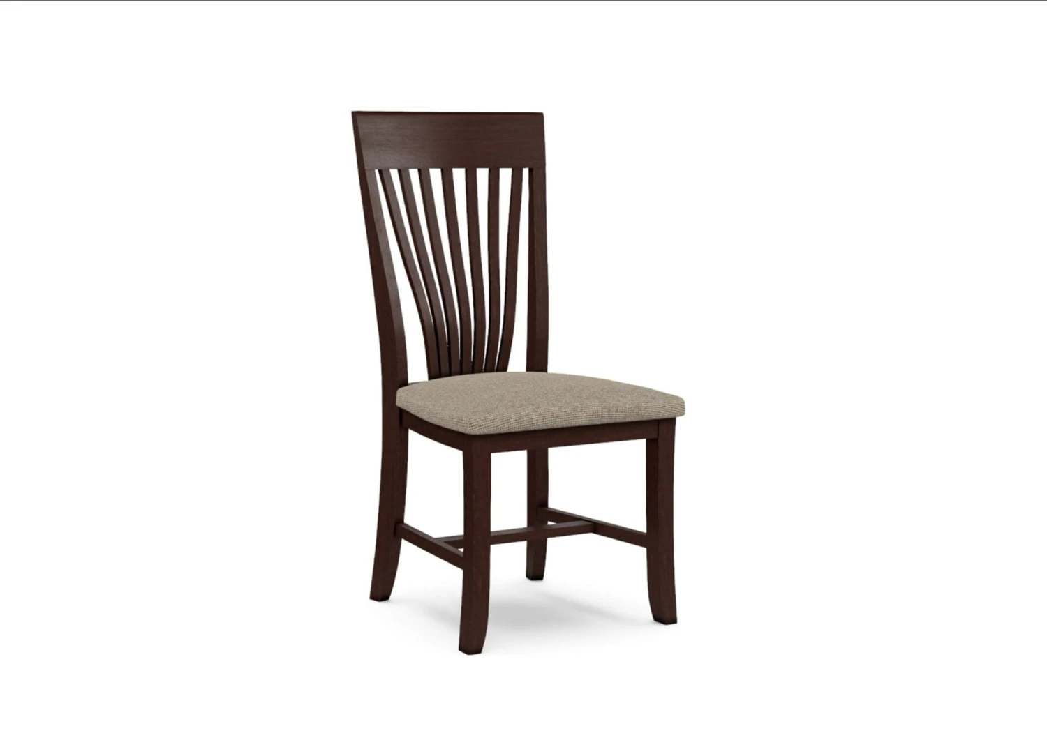 The Amanda Chair provides a unique twist on a traditional slat-back design. The gently curved back is both eye-catching and supportive with a wide top on the back and ample room on the seat. Made from solid, eco-friendly Parawood, this chair offers maximum strength and durability. Furthermore, the leg stretchers are both screwed and glued in place to protect your chair from strenuous and everyday use. The Amanda chair is sold in a set of 2; however, single chairs are available for purchase in our retail store. This chair is also available with a variety of fabric options that can be combined with any finish. You can view several fabrics on the chairs in the picture gallery. Additional fabric choices are shown here: Standard Fabric Options
