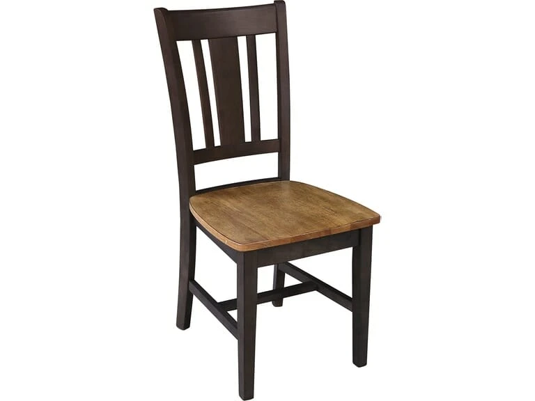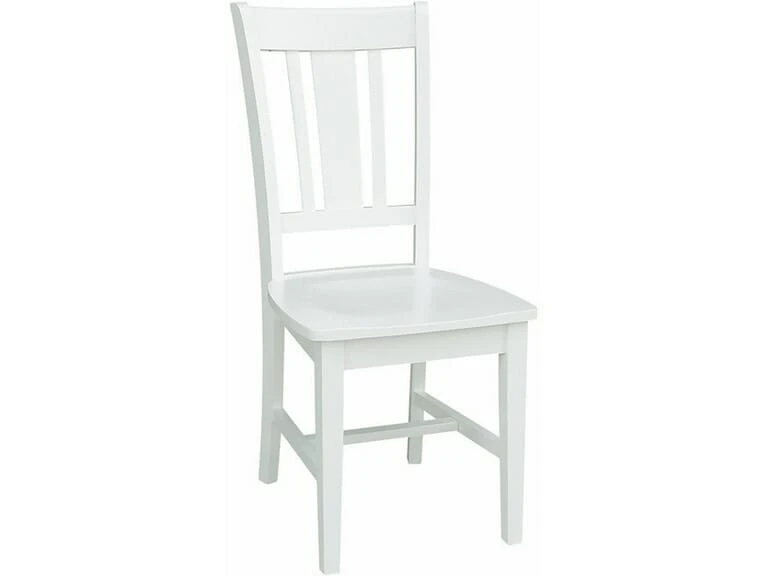 The San Remo Chair offers clean, simple lines and works well in a contemporary home. The wide slat on the back provides an eye-catching design and good lumbar support. The size of this chair pairs well with a smaller dinette table. It is made from solid, eco-friendly Parawood in order to ensure maximum strength and durability. Furthermore, the stretchers are both screwed and glued in place to protect your chair from strenuous and everyday use. This chair is available unfinished or in a variety of custom factory finishes. It is also available unfinished with an upholstered seat ( Upholstered San Remo Chair ). This chair ships in a set of 2; however, single chairs can be purchased at our retail store.