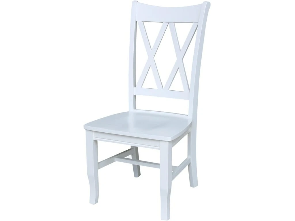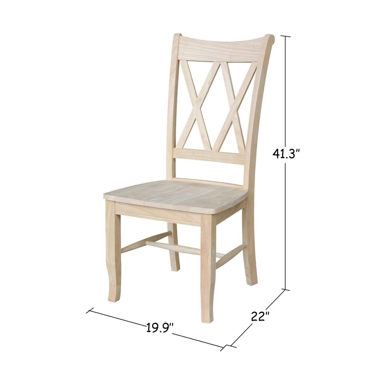 The Double X-Back Chair offers an elegant design with a very supportive back. This chair is relatively large and pairs well with any of our larger tables, including our extension tables. It is made from solid, eco-friendly Parawood in order to ensure maximum strength and durability. Furthermore, the stretchers are both screwed and glued in place to protect your chair from strenuous and everyday use. This chair is available unfinished or factory finished in Pure White, Chalk, or Black. This chair is also available unfinished with an upholstered seat ( Upholstered Double X-Back Chair). The X-back chair is sold in a set of 2; however, single chairs are available for purchase in our retail store.