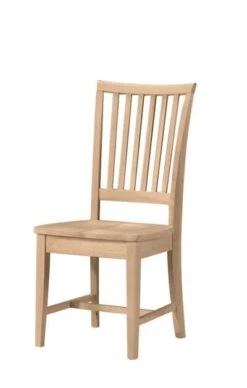 The Mission Side Chair features classic construction with clean and simple lines. It’s traditional look allows for use with a variety of styles. The wide seat and gentle curve of the slatted back provides extra comfort and support. This chair is made from solid, eco-friendly Parawood in order to ensure maximum strength and durability. Furthermore, the leg stretchers are both screwed and glued in place to protect your chair from strenuous and everyday use. This chair is available unfinished or factory-finished in solid black. The side chair is also available with an upholstered seat ( Upholstered Mission Chair ). It ships in a set of 2; however, single chairs are available for purchase at our retail store.
