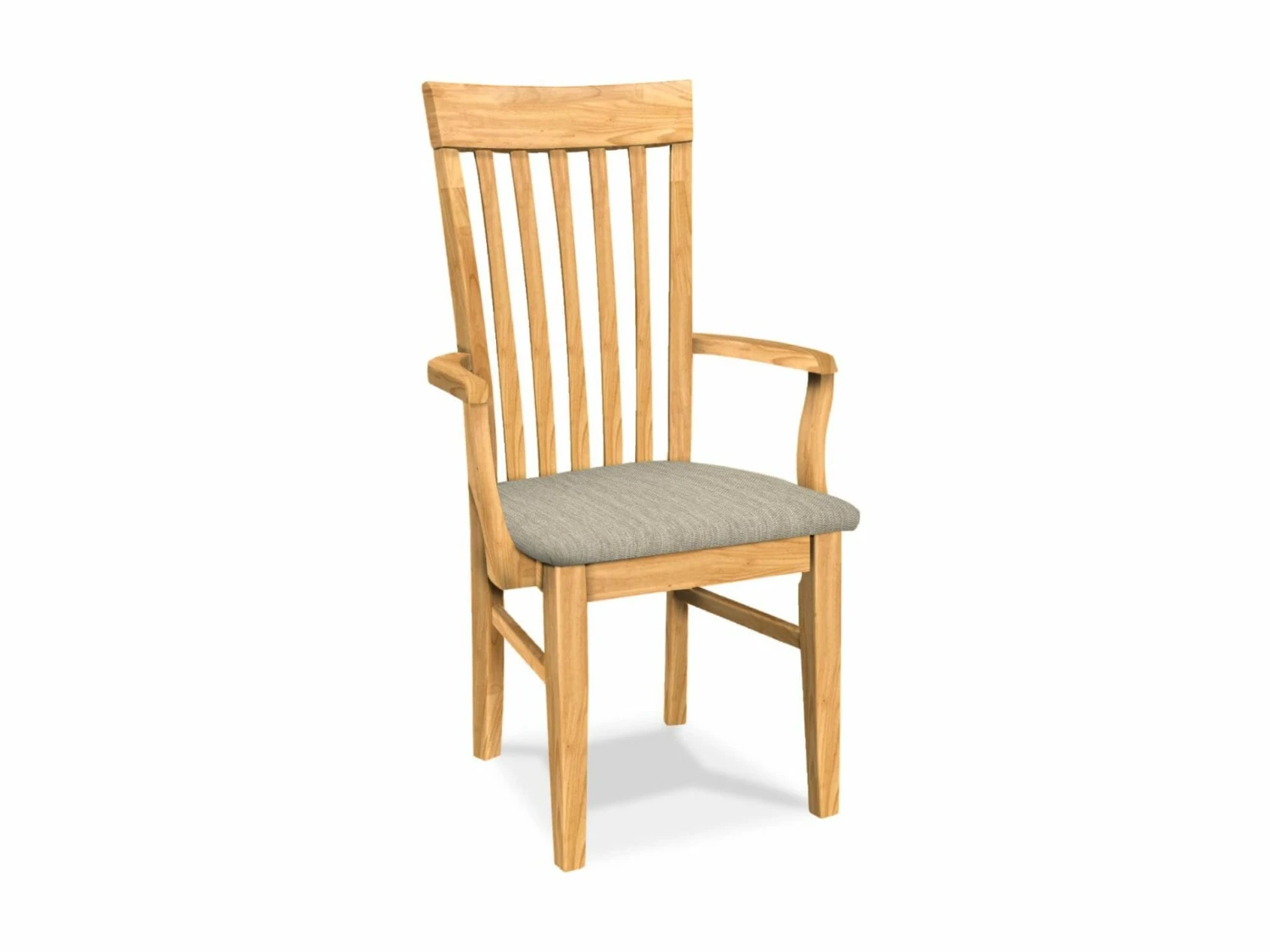 The CI-465-F6 Upholstered Tall Mission Arm Chair is a taller version of the Mission Side Chair with the addition of side arms. It offers a clean and classic look that will match any decor. This versatile chair has simple lines and will last for years to come. In addition, this Mission chair provides maximum comfort when dining with your family or entertaining your friends. Enjoy the fine craftsmanship of John Thomas with a chair that is beautifully made, long-lasting, and affordable.