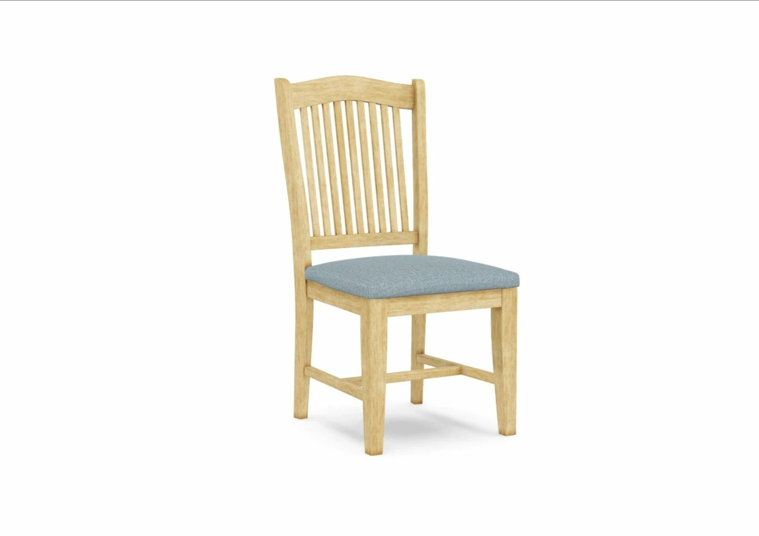 The Upholstered Stafford Chair features a vertical slat back and gently curved top for added interest. The wide seat and back offer both comfort and excellent lumbar support. This chair is made from solid, eco-friendly Parawood in order to ensure maximum strength and durability. Furthermore, the leg stretchers are both screwed and glued in place to protect your chair from strenuous and everyday use. The Stafford chair is available unfinished with your choice of several fabric options. The picture gallery allows viewing of several fabrics on the chair. Click here to view additional fabric options: Standard Fabric Options. This chair is also available with a standard wood seat: Stafford Chair. The Stafford chair is sold in a set of 2; however, single chairs are available for purchase in our retail store.