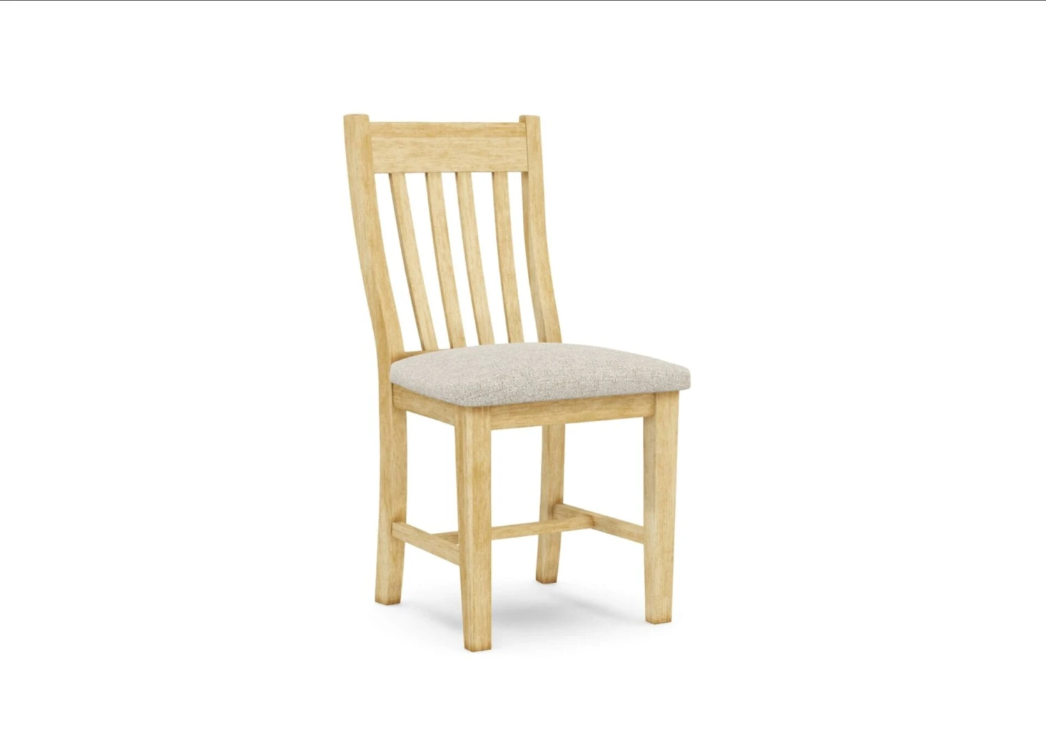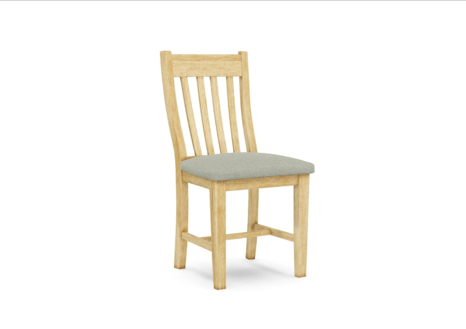 The Upholstered Cafe Chair offers a traditional style that works well in any kitchen or dining space. The wide vertical slats on the back provide extra lumbar support, allowing you to seat your guests in comfort and style. This chair is made from solid, eco-friendly Parawood in order to ensure maximum strength and durability. Furthermore, the leg stretchers are both screwed and glued in place to protect your chair from strenuous and everyday use. This chair is available unfinished with your choice of several fabric options. The picture gallery allows viewing of several fabrics on the chair. Click here to view additional fabric options: Standard Fabric Options. This chair is also available with a standard wood seat: Cafe Chair. It ships in a set of 2; however, single chairs are available for purchase at our retail store.