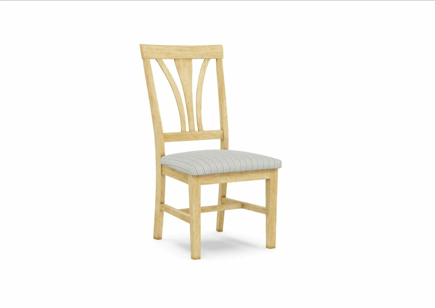 The Fan Back Chair features elegant, clean lines that provides an eye-catching design for any kitchen or dining space. The wide seat and supportive back allows you guests to sit comfortably. The Fan Back chair is made from solid, eco-friendly Parawood in order to ensure maximum strength and durability. Furthermore, the leg stretchers are both screwed and glued in place to protect your chair from strenuous and everyday use. This chair is available unfinished with your choice of several fabric options. The picture gallery allows viewing of several fabrics on the chair. Click here to view additional fabric options: Standard Fabric Options. This chair is also available with a standard wood seat: Fan Back Chair.