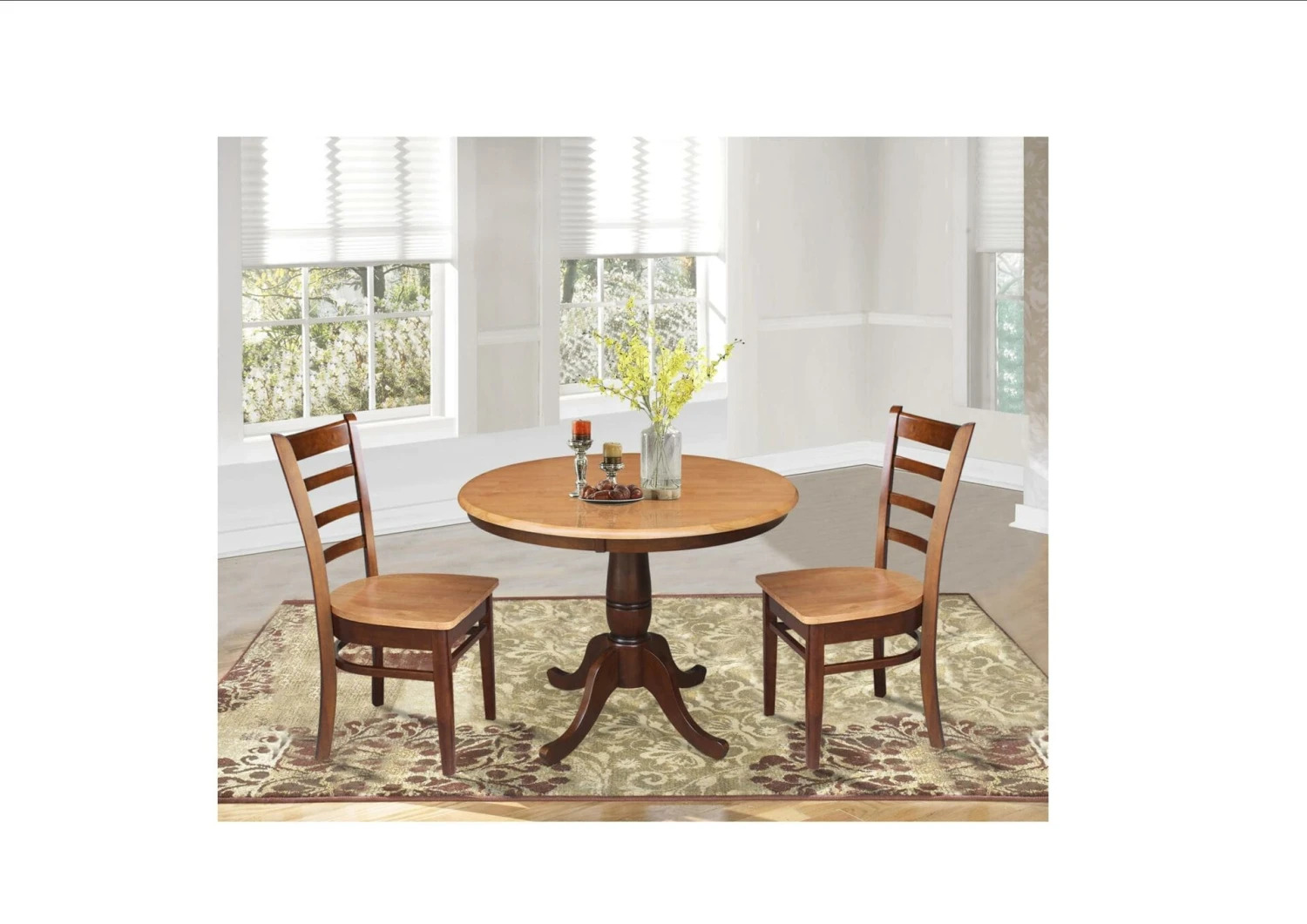 Model number K58-36RT-C-617 Round Pedestal Table with 2 Emily Chairs in Cinnamon & Espresso by Whitewood Industries