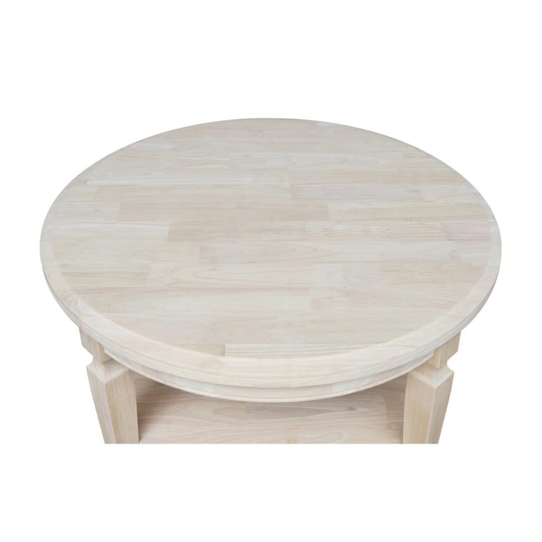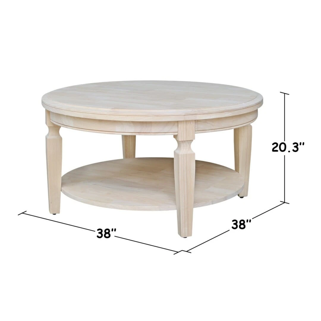 The Vista Round Coffee Table offers a classic look with subtle detailing on the legs. It features a solid wood shelf on the bottom. Use this shelf for additional storage or as a place to display photos, books, or other collectibles. At 38-inches in diameter, this table works well in front of a sofa. Sitting 20-inches tall, this coffee table pairs well with larger sofas. The Vista Round Coffee Table ships unfinished or in your choice of three, two-tone factory finishes. Constructed from solid, eco-friendly Parawood, this table ensures strength and durability. In addition, the unfinished table easily stains or paints to match your existing furniture. In order to view several finishing tutorials, visit General Finishes‘ website.