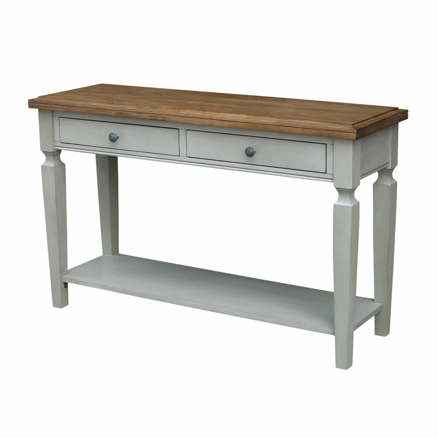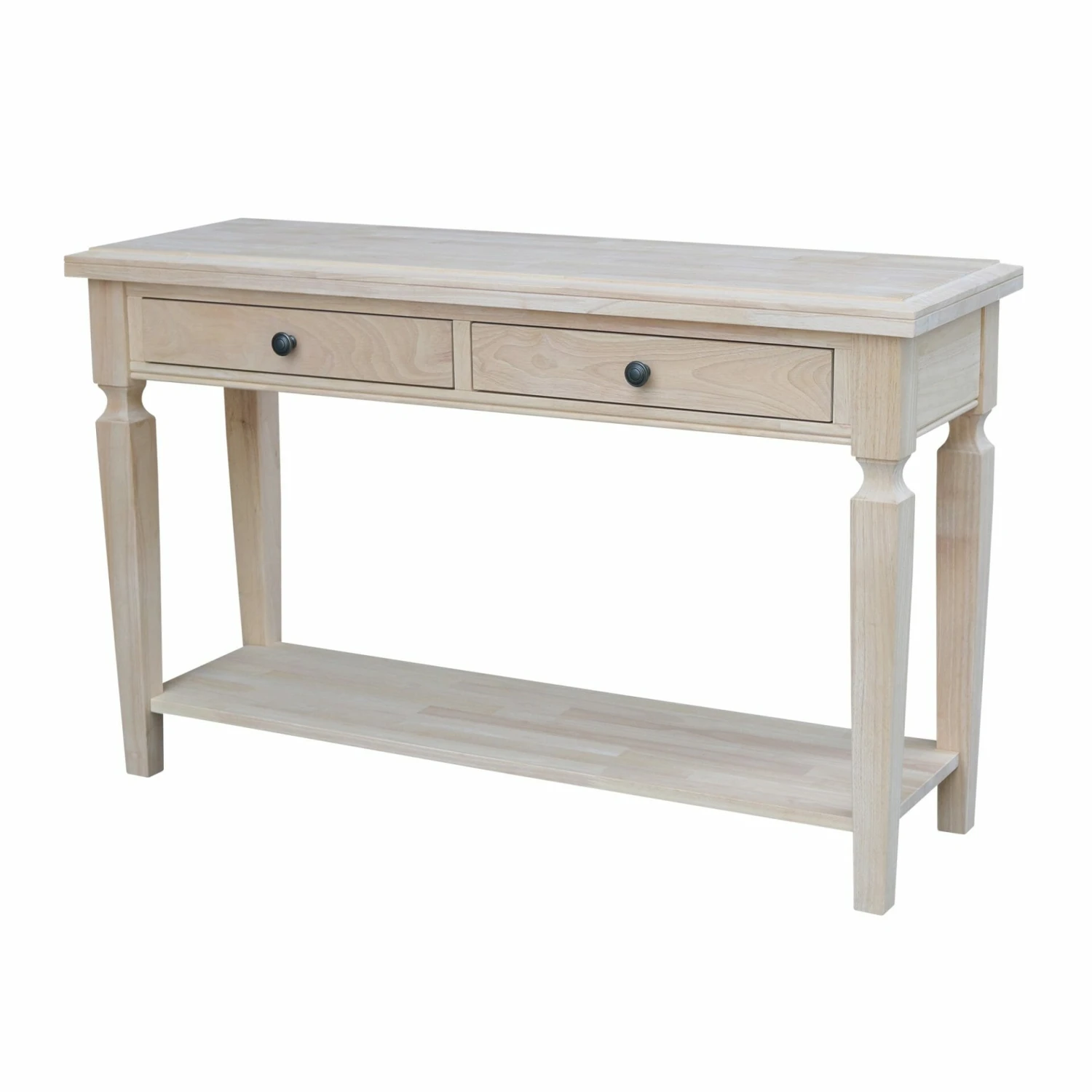 The Vista Sofa Table offers a classic look with subtle detailing on the legs. It features two drawers that glide on full extension ball bearing roller glides and a solid wood shelf on the bottom. Use this shelf for additional storage or as a place to display photos, books, or other collectibles. This table works well behind a sofa, but can also be used as an entry table. The Vista Sofa Table ships unfinished or in your choice of three, two-tone factory finishes. It is made from solid, eco-friendly Parawood in order to ensure strength and durability. In addition, the unfinished table can also be easily stained or painted to match your existing furniture. To view several finishing tutorials, visit General Finishes‘ website.