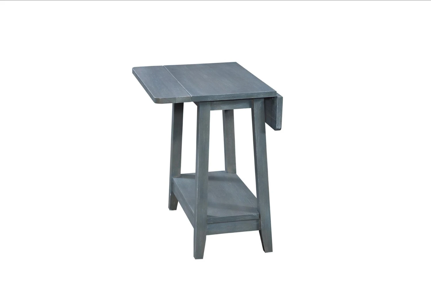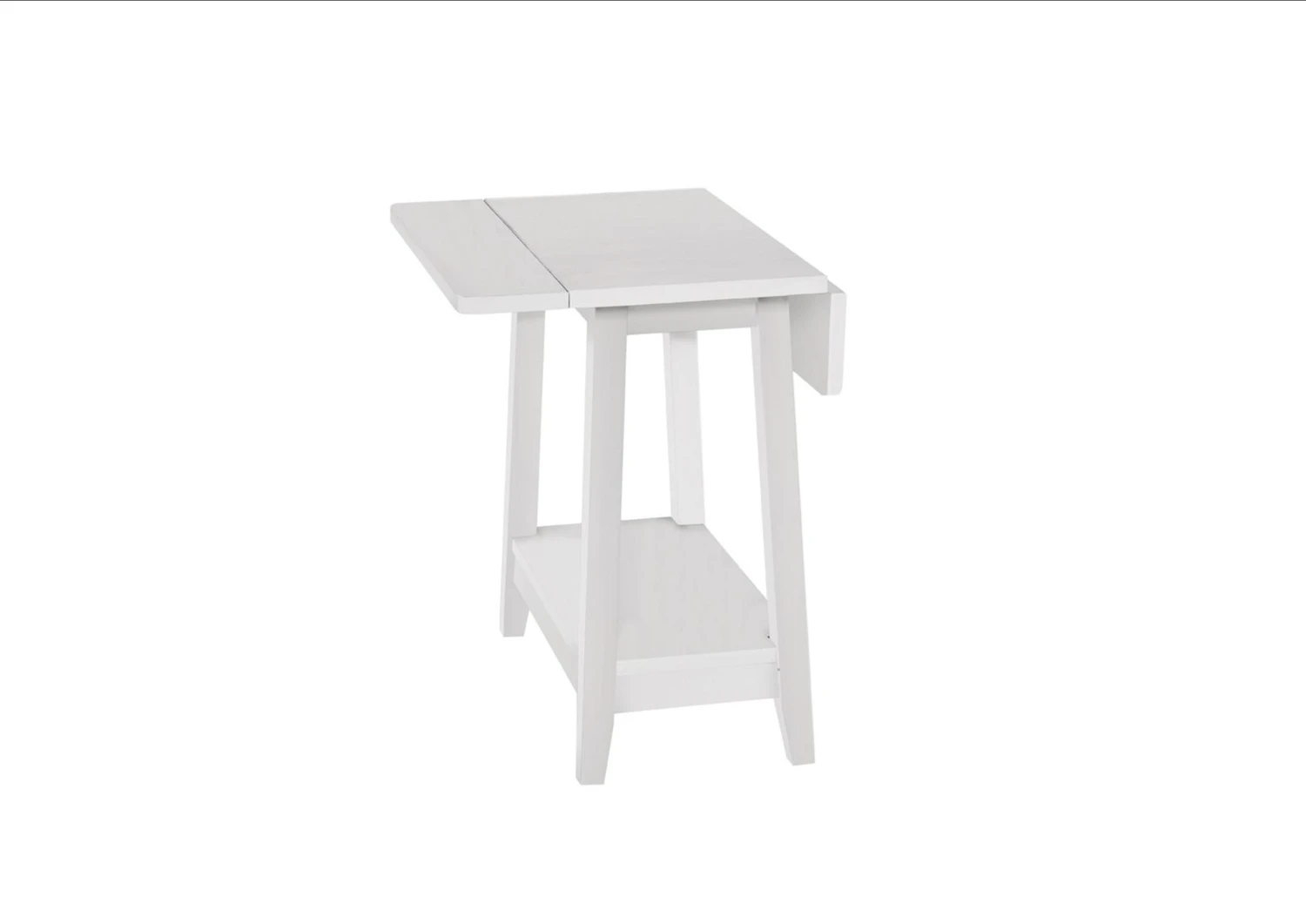 The Dropleaf Side Table pairs perfectly with any piece in the Destinations Collection. It features a versatile, dropleaf feature on both sides and a bottom shelf for added storage space. This table rests perfectly beside a couch or chair and fits well in smaller areas. The solid wood, dropleaf top allows for use in multiple spaces and provides ample space for all of your needs. Made from solid, eco-friendly Parawood, this table ensures maximum strength and durability. It is available unfinished or in your choice of four beautiful colors: Pure White, Ocean Blue, Heather Gray, or Black. The unfinished table also easily stains or paints to match your existing furniture.