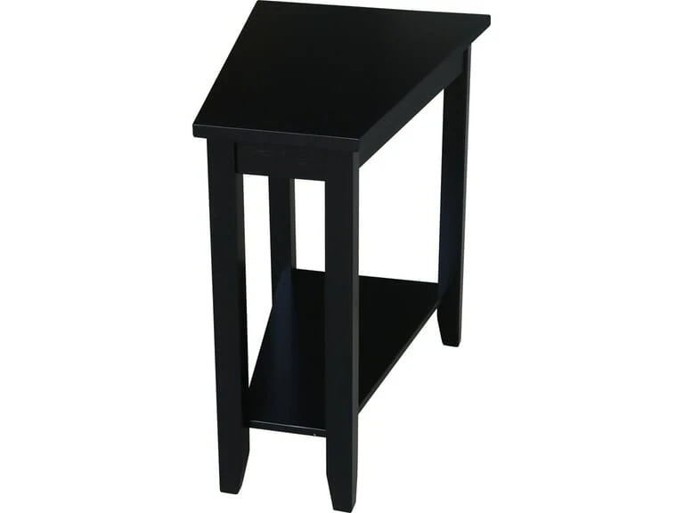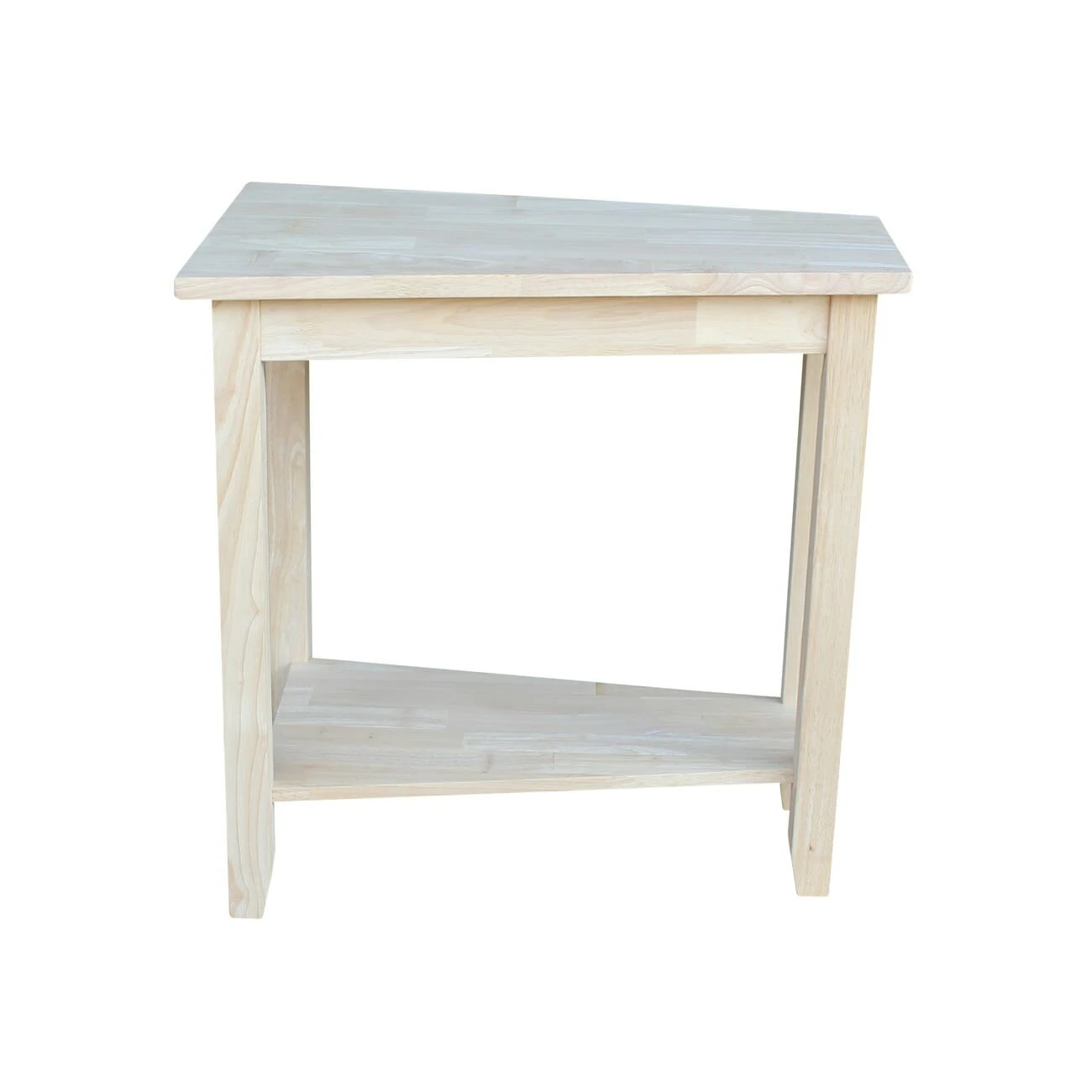 The Keystone End Table pairs perfectly with any piece in the Destinations Collection. This unique shape works well with recliners or chairs placed at an angle. It offers a solid wood top that supplies plenty of space for your remote, phone, and beverage. The lower shelf provides additional storage. Made from solid, eco-friendly Parawood, this end table ensures maximum strength and durability. It is available unfinished or in your choice of four beautiful colors: Pure White, Ocean Blue, Heather Gray, or Black. The unfinished table also easily stains or paints to match your existing furniture or add a pop of color to your space. The versatile design allows for use with any home decor.