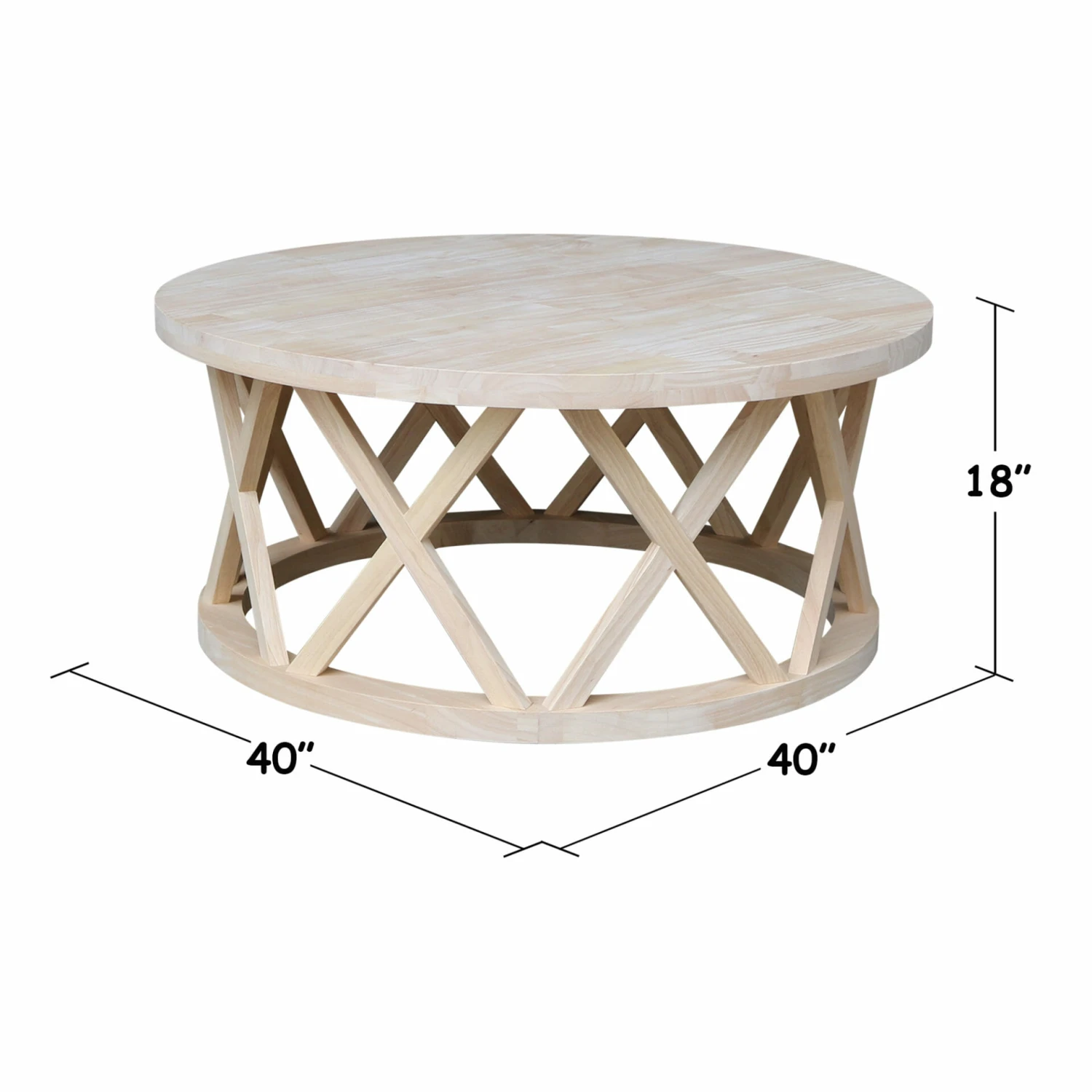 The Ceylon Coffee Table pairs perfectly with any piece in the Destinations Collection. The cross slat style surrounding the base provides a casual, coastal feel to this simple design. Use this round table in the center of your living room to bring the room together. Made from solid, eco-friendly Parawood, this table ensures maximum strength and durability. It is available unfinished or factory finished in Solid Black and Pure White. The unfinished table also easily stains or paints to match your existing furniture or add a pop of color to your space. Pair it with the matching Round End Table or any of the other pieces in the Destinations Collection for a stylish and cohesive look.