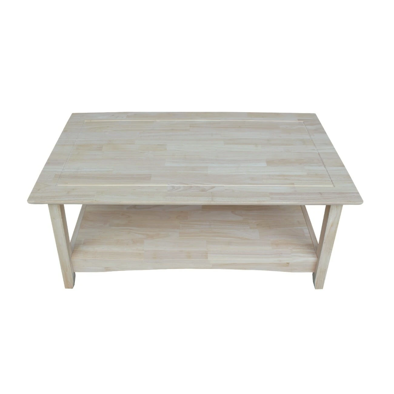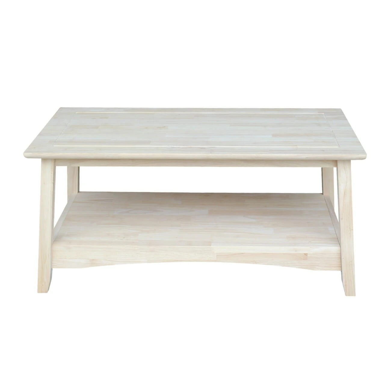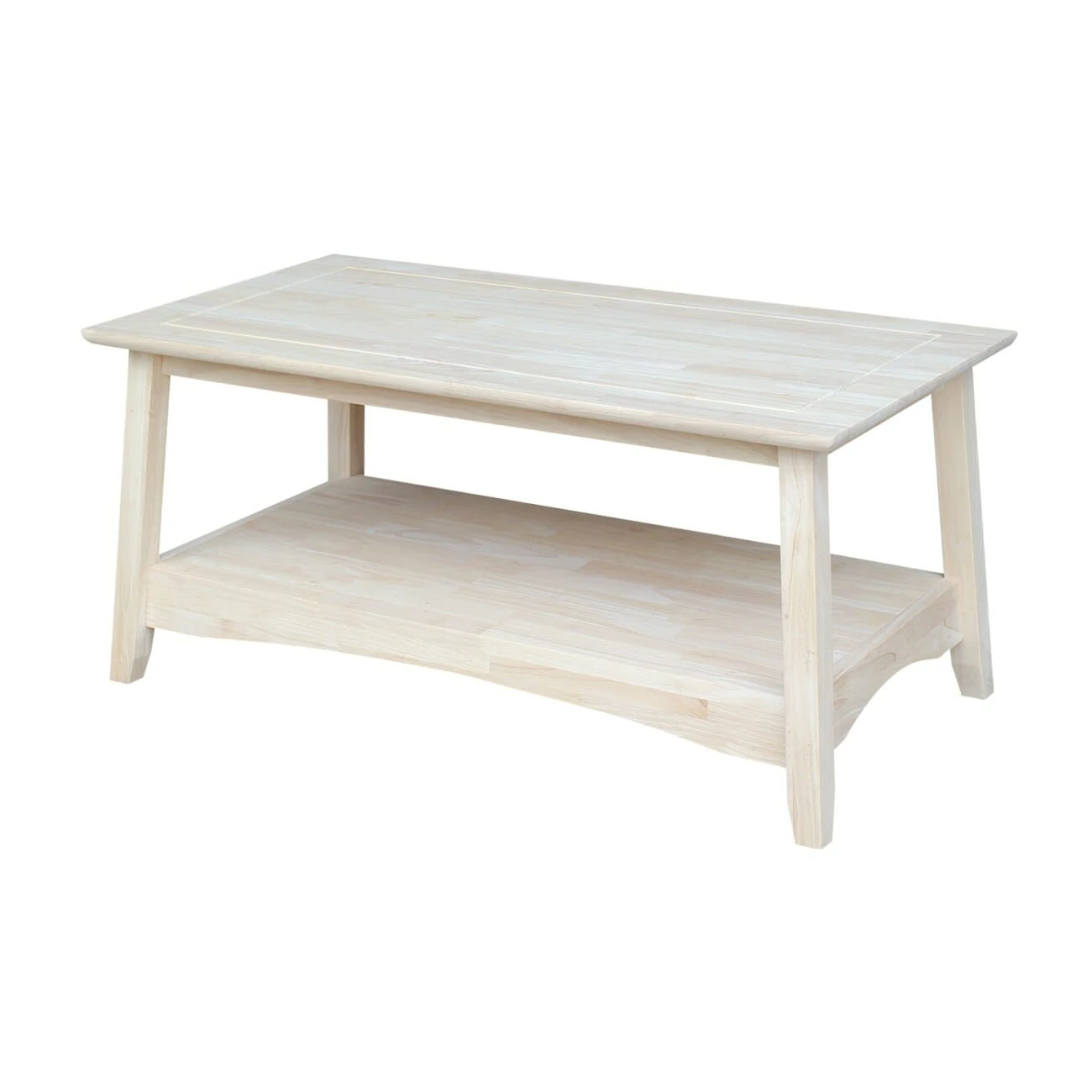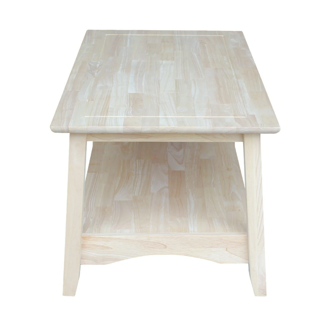 The versatile and functional Bombay Coffee Table works well in any room in your home. It offers a long, solid wood top with a lower shelf for additional storage, perfect for baskets or board games. The slight angle on the legs adds interest and gives this piece an updated and modern feel. Use this table in front of your sofa or loveseat. Made from solid, eco-friendly Parawood, this table ensures strength and durability. This coffee table ships unfinished, but can also be easily stained or painted to match your existing furniture. This table also pairs well with any of the other pieces in the Bombay Collection and creates a cohesive look. This sofa table ships disassembled with Free Shipping.