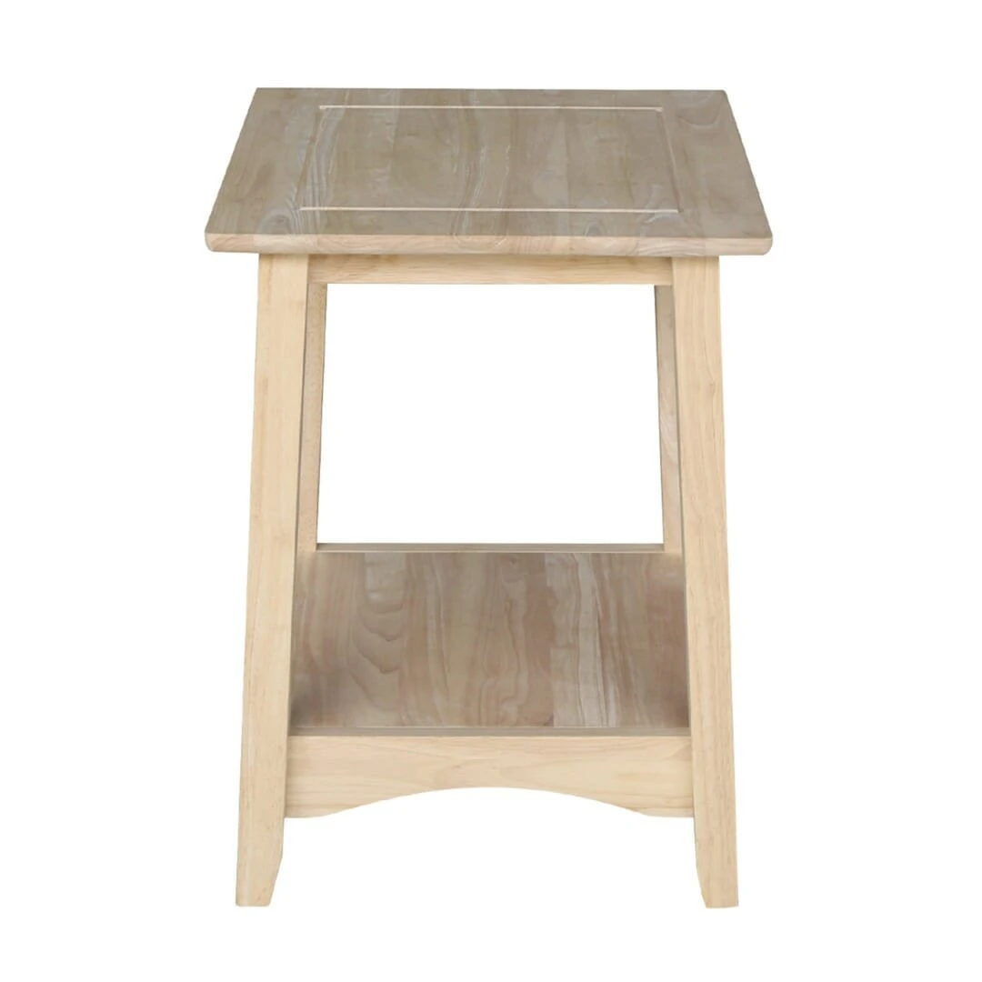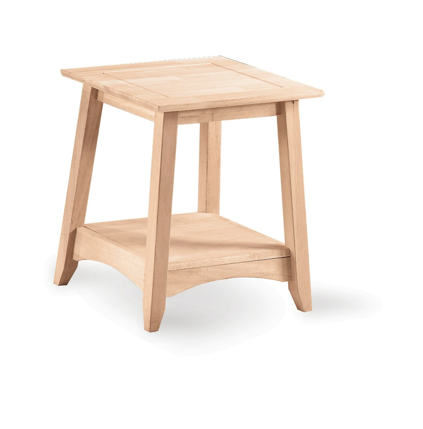The versatile and functional Bombay End Table works well in any room in your home. It offers a long, solid wood top with a lower shelf for additional storage. The slight angle on the legs adds interest and gives this piece an updated and modern feel. Use this table as intended as and end table or use it as a decorative nightstand in the bedroom. Made from solid, eco-friendly Parawood, this table ensures strength and durability. This end table ships unfinished, but can also be easily stained or painted to match your existing furniture. This table also pairs well with any of the other pieces in the Bombay Collection and creates a cohesive look. This end table ships disassembled with Free Shipping. Free assembly available for items picked up from our Wilmington NC location.
