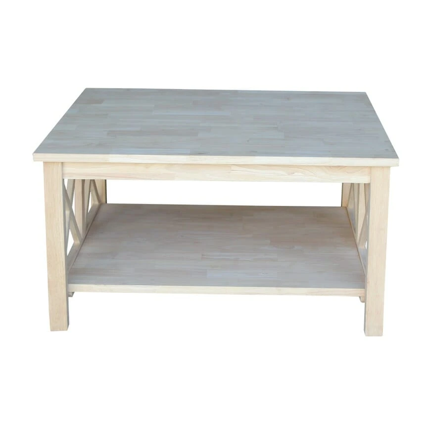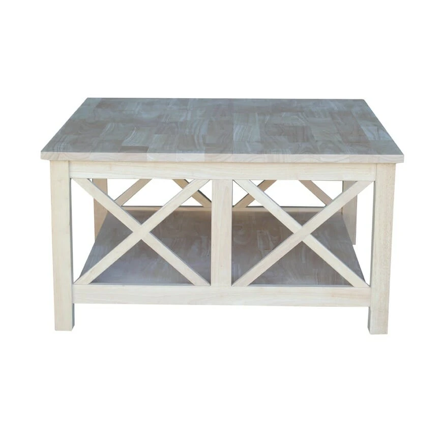 The Hampton Square Coffee Table offers a simple and sturdy design. This table features one fixed bottom shelf for extra storage, perfect for baskets or long enough for board games. At 36″ wide this table will not look out of scale with smaller sofas or loveseats. The XX pattern on both sides of the table adds a subtle detail to this otherwise simple table. The Hampton square coffee table is available unfinished or in your choice of 3 factory finishes: Espresso (581), Weathered Gray (09), White (08). It is made from solid, eco-friendly Parawood in order to ensure strength and durability and the unfinished table can also be easily stained or painted to match your existing furniture. To view several finishing tutorials, visit General Finishes‘ website.