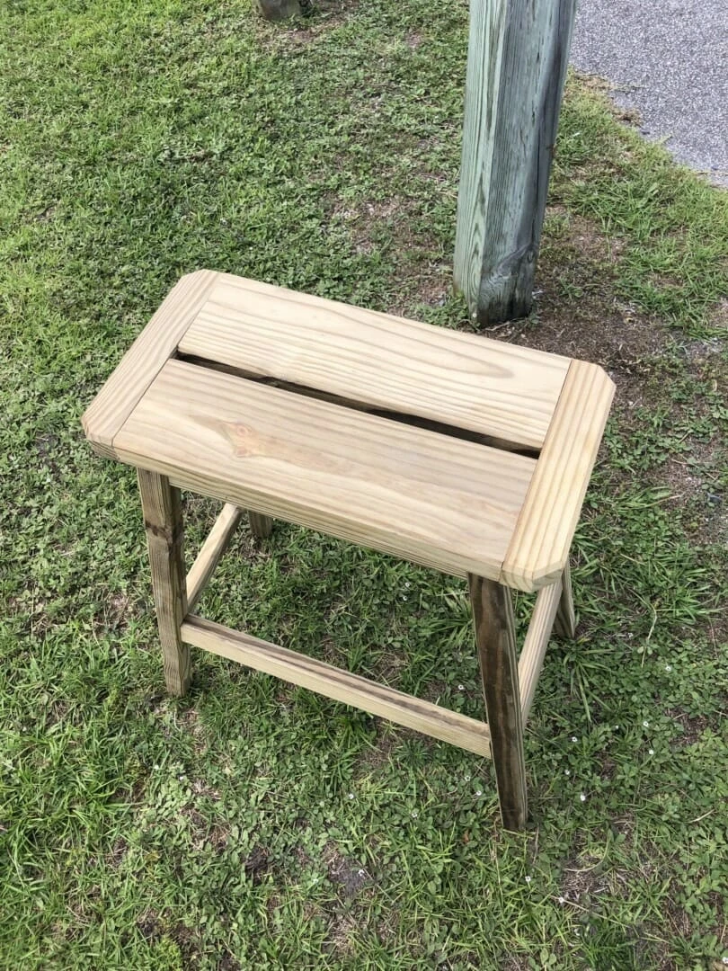 This unfinished stool can endure the elements, allowing you to admire the natural Pine rings for years to come.