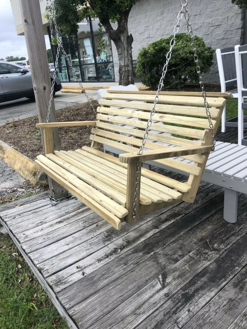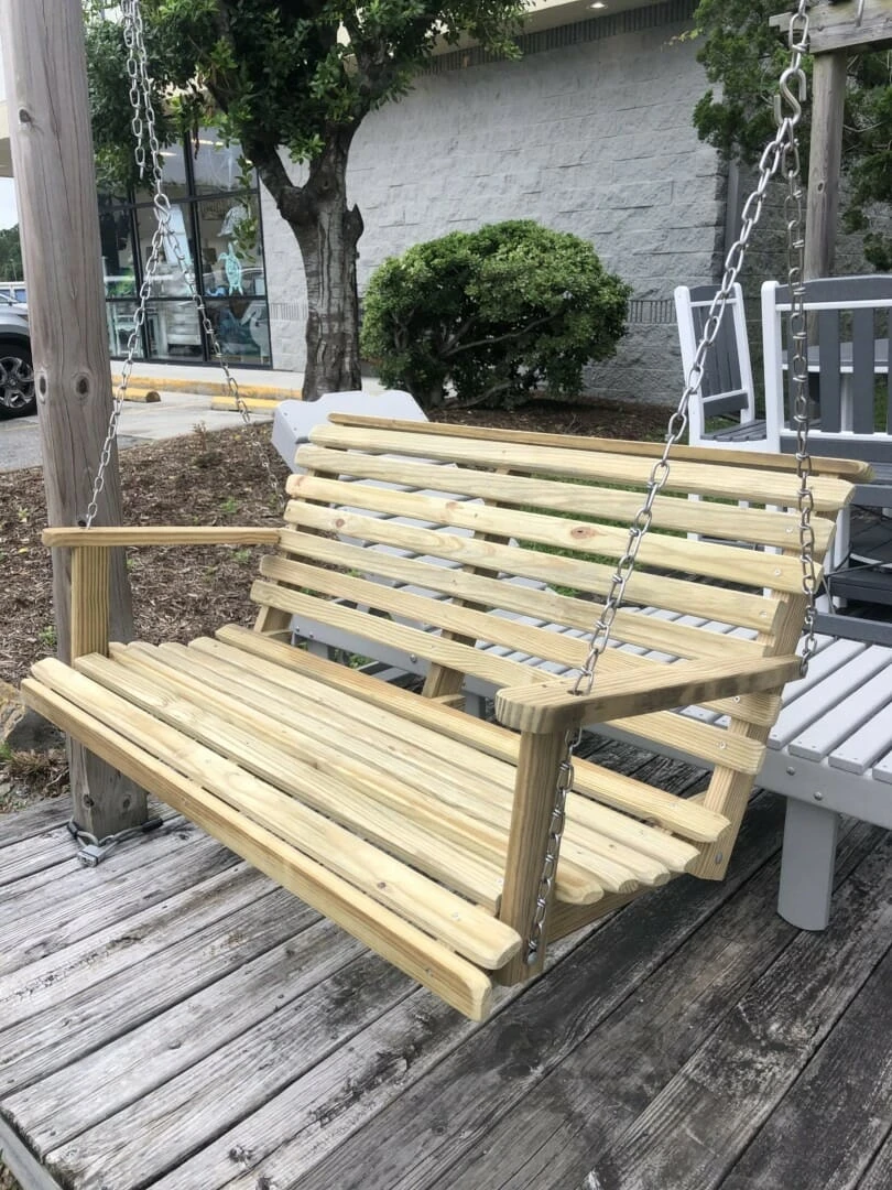 Produced in our home state of North Carolina, the Pekin Pressure Treated Pine 5-Foot Swing is the perfect addition for your front porch, back deck, or any outdoor space.