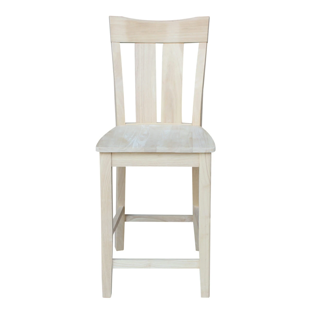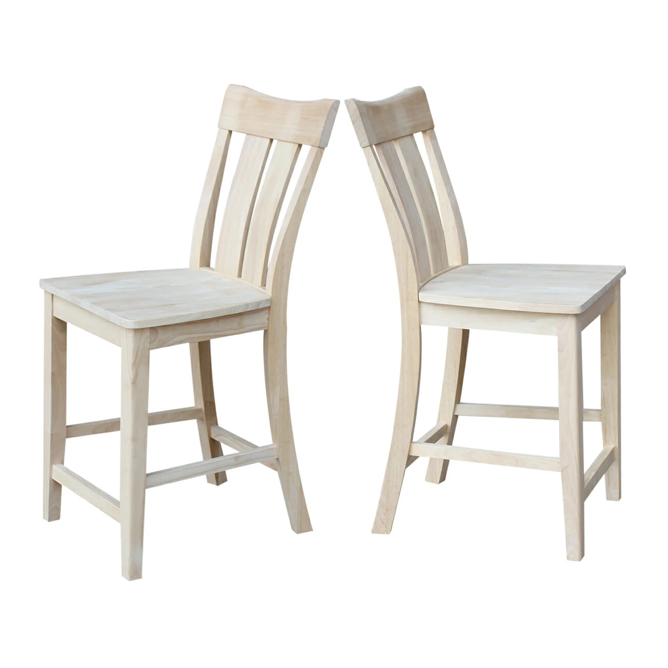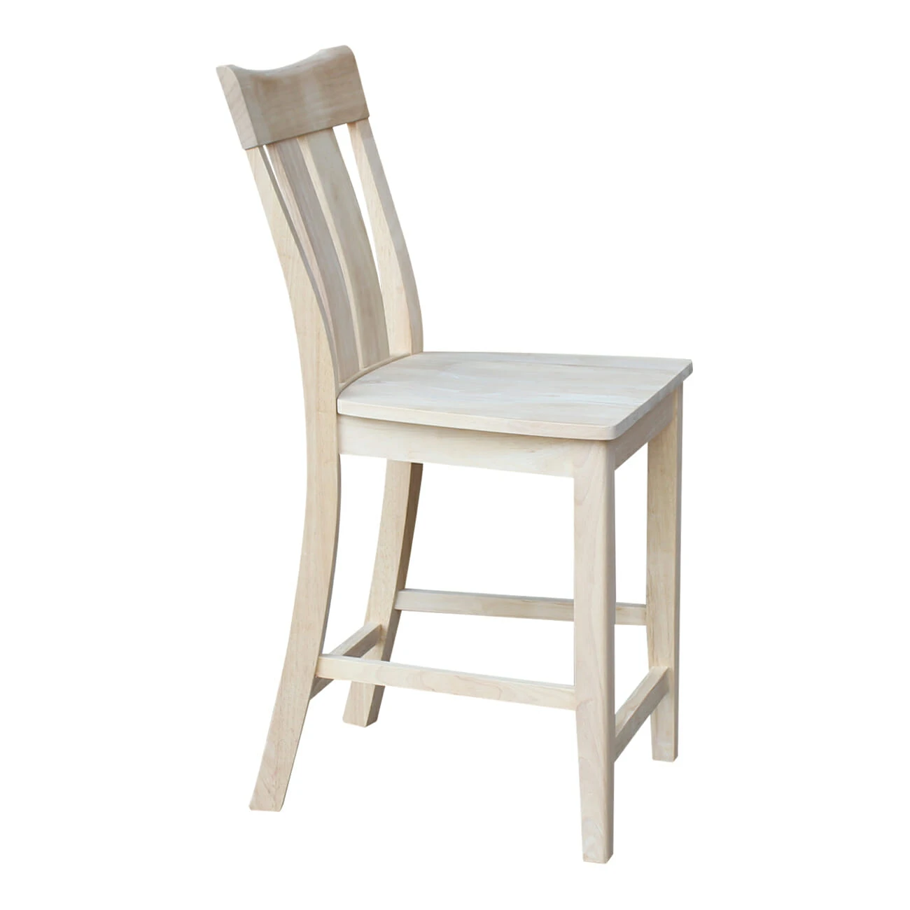 The S-132 Ava Counter Stool has a simple, clean design that pairs well with a variety of styles. It features two wide, vertical slats on the back with a gentle curve at the top. The curved back provides excellent lumbar support, without compromising style. With a seat height of 24″, this stool is designed to be used at a standard kitchen counter height of 36 inches tall. It is made from solid, eco-friendly Parawood in order to ensure strength and durability. Furthermore, the stretchers are both screwed and glued in place to protect your stool from strenuous and everyday use. The Ava counter stool is available unfinished or in your choice of four factory finishes. It is also available with a swivel seat: S-132SW Ava Swivel Stool.