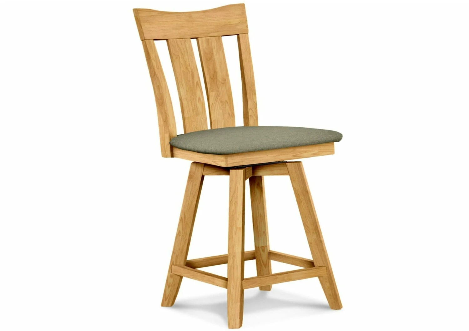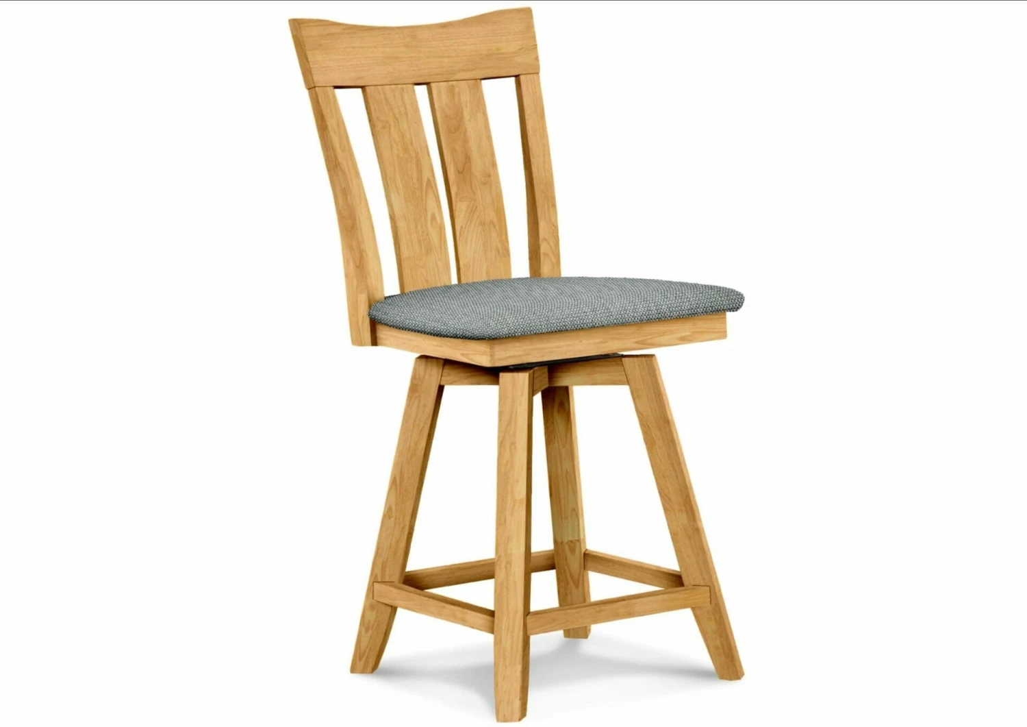 The Upholstered Ava Swivel Counter Stool offers a modern style making it perfect for your contemporary kitchen design. It features two wide slats on the back with a gentle curve at the top. In addition, the sturdy ball-bearing swivel seat provides additional functionality when dining with your family and friends. With a seat height of 24″, this stool can be used at a standard kitchen counter height of 36 inches tall. It is made from solid, eco-friendly Parawood in order to ensure strength and durability. Furthermore, the stretchers are both screwed and glued in place to protect your stool from strenuous and everyday use. This stool sells unfinished with your choice of several fabric options. The picture gallery allows viewing of several fabrics on the stool. Click here to view additional fabric options: Standard Fabric Options. It also pairs well with the Ava Counter Stool or Ava Bar Stool.