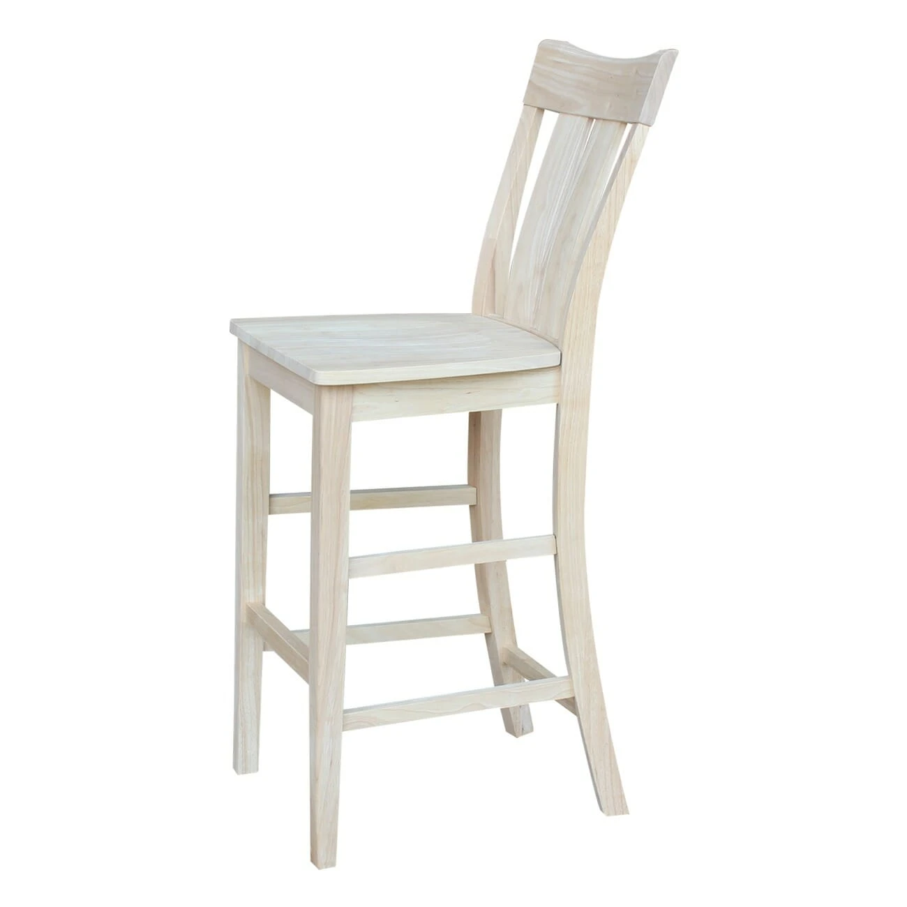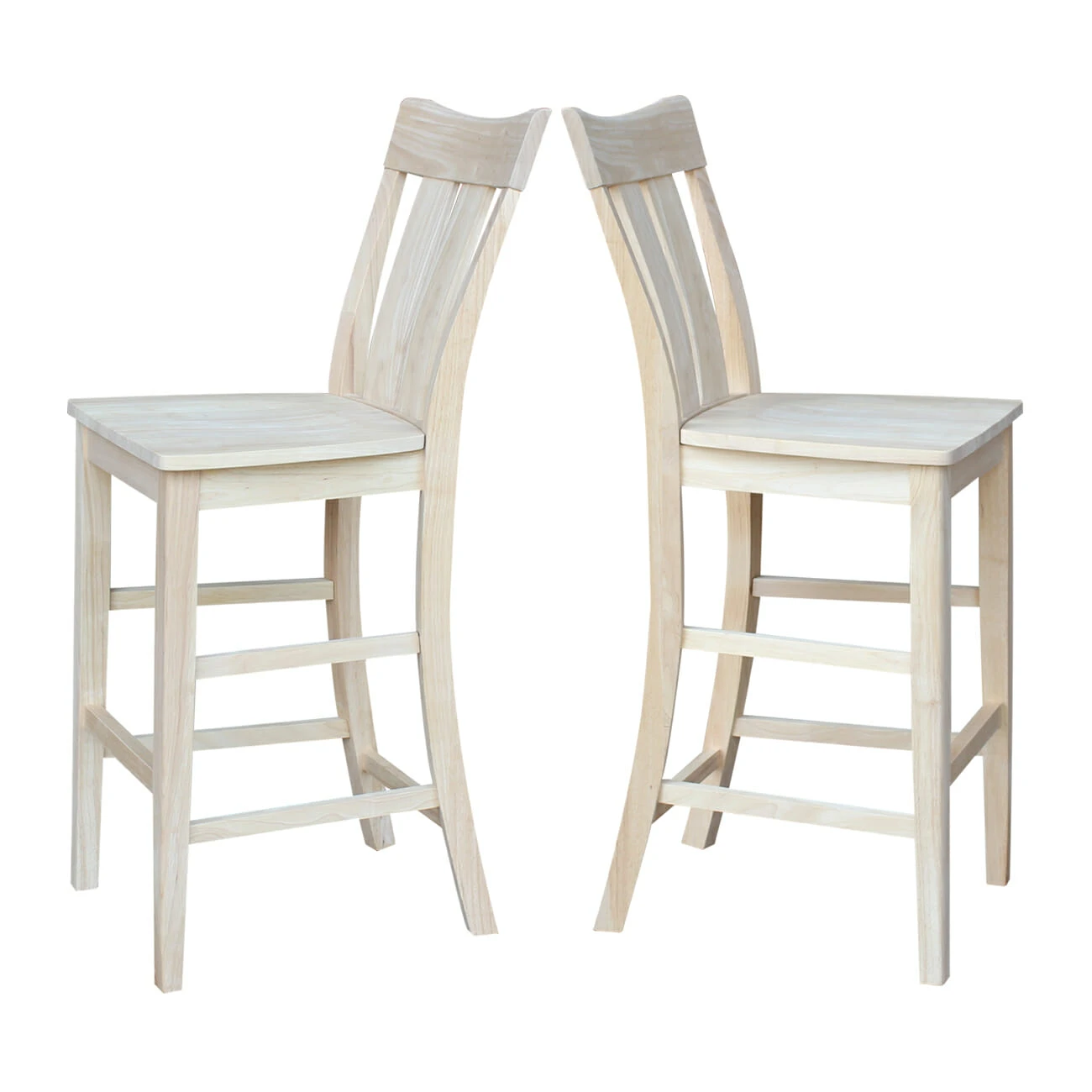 The S-133 Ava Bar Stool has a simple, clean design that pairs well with a variety of styles. It features two wide, vertical slats on the back with a gentle curve at the top. The curved back provides excellent lumbar support, without compromising style. With a seat height of 30″, this stool is designed to be used at your 42″ tall bar or table. It is made from solid, eco-friendly Parawood in order to ensure strength and durability. Furthermore, the stretchers are both screwed and glued in place to protect your stool from strenuous and everyday use. The Ava Bar stool is available unfinished, but can be easily stained or painted to match your existing furniture. This stool pairs well with the Ava Counter Stool or Ava Swivel Counter Stool.