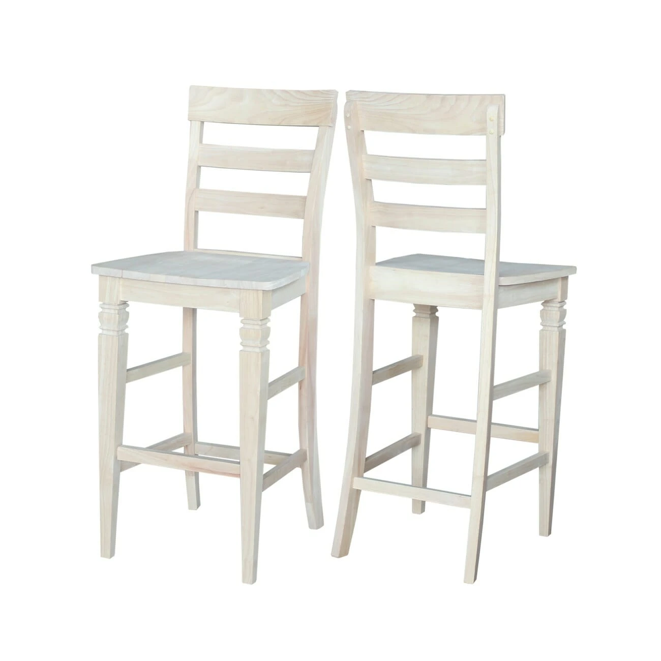The S-193 Java Bar Stool has a classic ladder style back that will hold you in full comfort. It features a gentle curve to the back and a delicately detailed cut on the front legs giving this stool an old world elegance. The stool sits 30″ tall and is designed for your 42″ tall bar table. In addition, it is made from solid, eco-friendly Parawood in order to ensure strength and durability. The stretchers are both screwed and glued in place to protect your stool from strenuous and everyday use. The Java Bar Stool is available unfinished, but can be easily stained or painted to match your existing furniture. This stool is also available with arms: Java Bar Stool with Arms