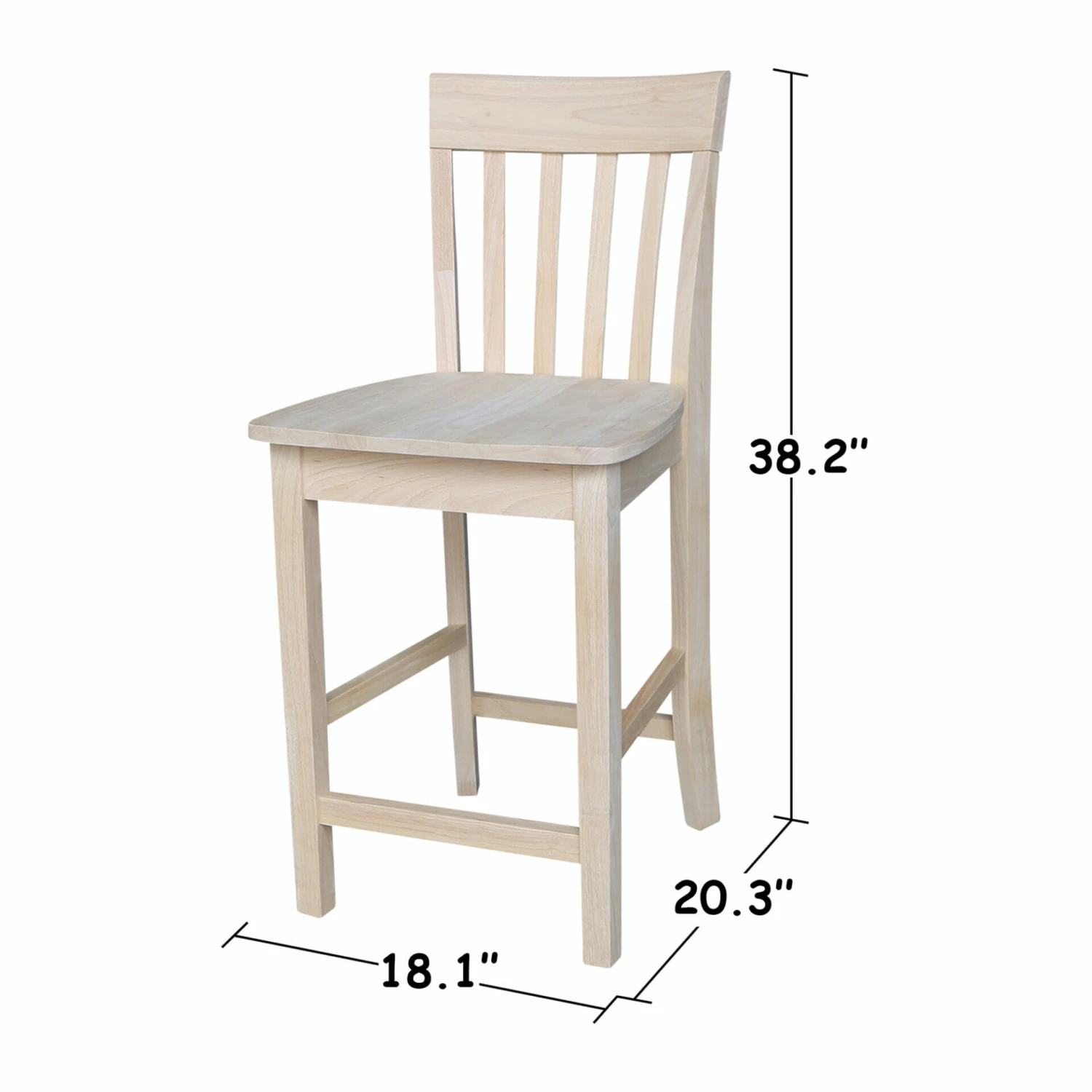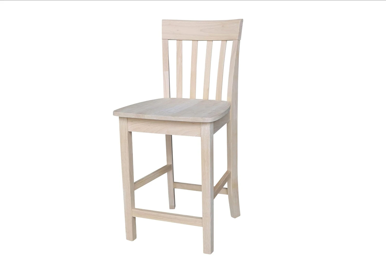 The S-3012 Slat Back Mission Counter Stool features a large top rail providing both lumbar comfort and increased stability. The vertical slats give this stool a traditional feel that compliments any home decor. The 24″ seat height allows this stool to pair well with any 36″ counter or bar table. The Slat Back Mission Counter Stool is made from solid, eco-friendly Parawood in order to ensure strength and durability. Furthermore, the stretchers are both screwed and glued in place to protect your stool from strenuous and everyday use. This counter stool is available unfinished, but can be easily stained or painted to match your existing furniture. This stool pairs well with the CI-265 Mission Side Chair.
