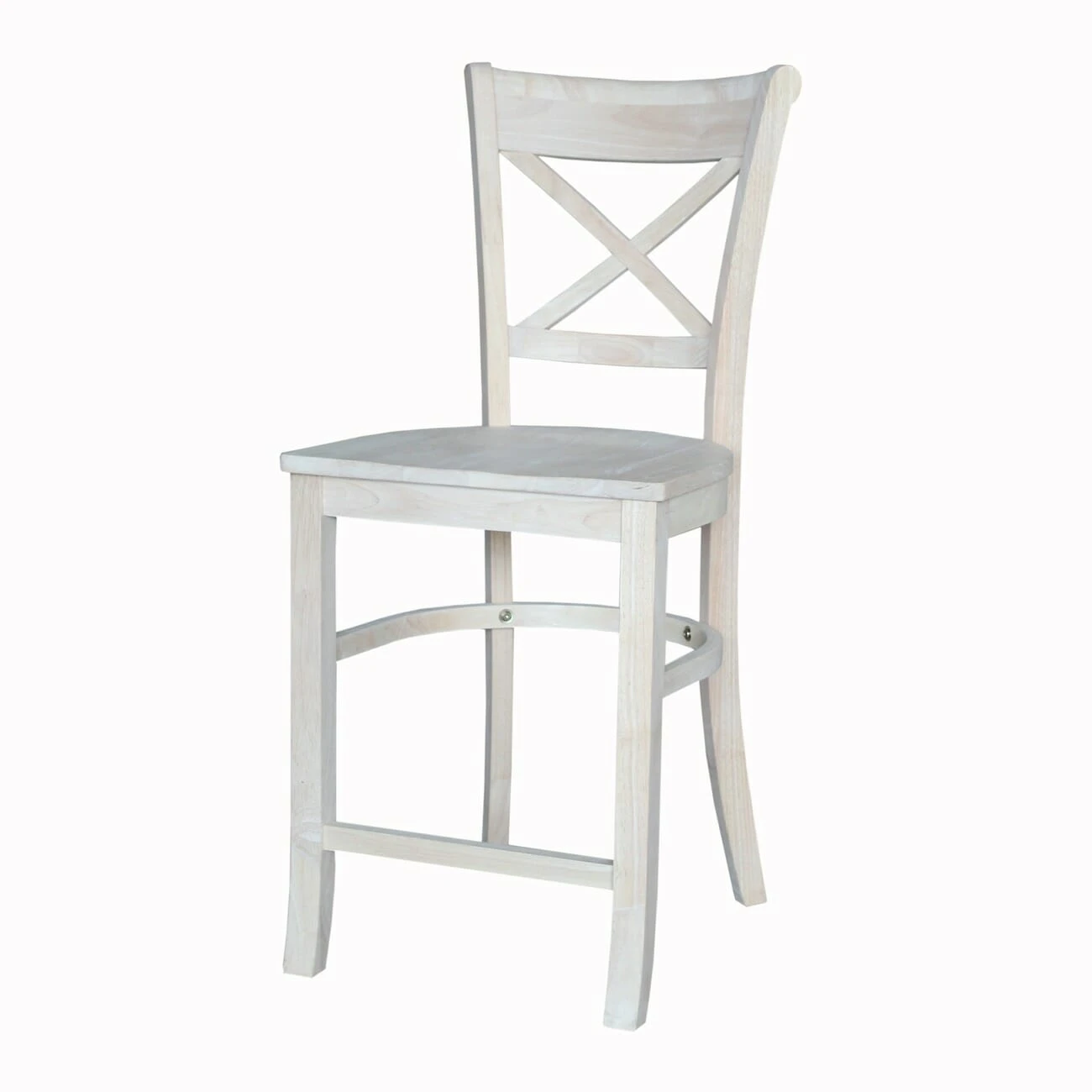 The S-312 Charlotte Counter Stool works well in smaller kitchen areas. The back of the stool features an elegant and simple X-back design and a gentle curve on the back legs. In addition, the wide seat offers maximum comfort and the wide top on the back provides excellent lumbar support. The seat height of 24 inches tall makes it perfect for a 36 inch tall table or counter. This stool is made from solid, eco-friendly Parawood in order to ensure strength and durability. Furthermore, the stretchers are both screwed and glued in place to protect your stool from strenuous and everyday use. This stool is available unfinished, but easily stains or paints to match your existing furniture.