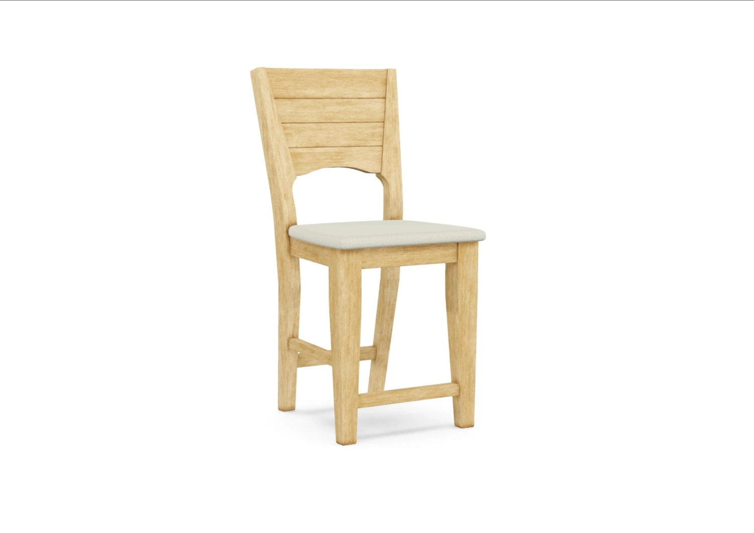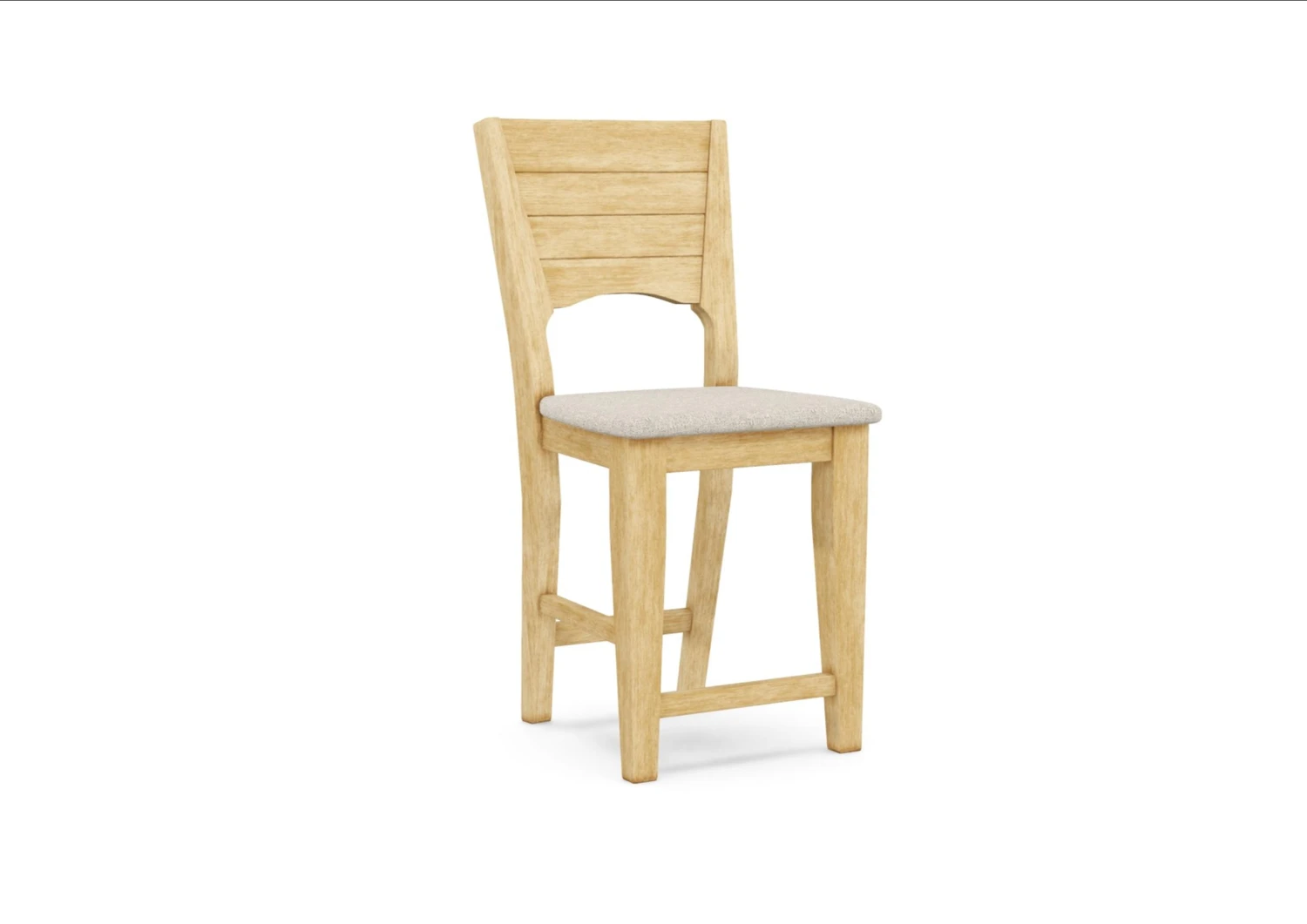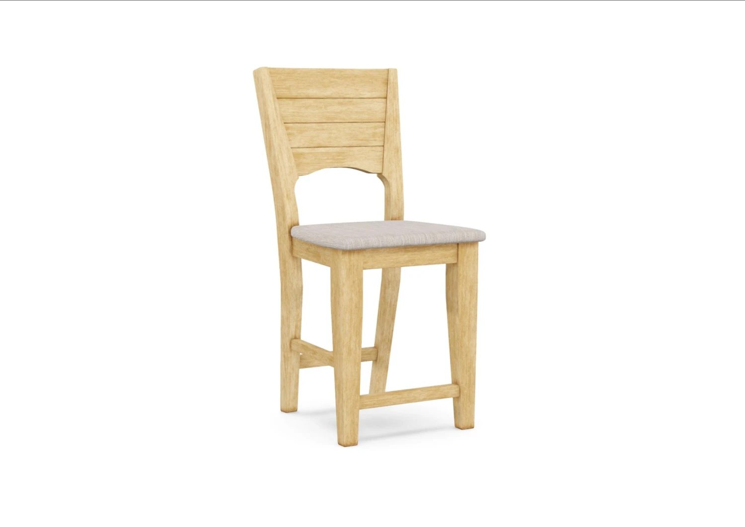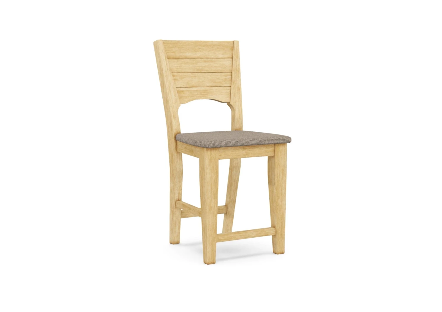 The Upholstered Canyon Full Counter Stool features a wide back with a subtle horizontal slat design. In addition, the sturdy legs and wide seat give this stool a solid, supportive fee while providing maximum back support and comfort. With a seat height of 24″, this stool will be the perfect fit for your counter or bar. It is made from solid, eco-friendly Parawood in order to ensure strength and durability. Furthermore, the stretchers are both screwed and glued in place to protect your stool from strenuous and everyday use. The Canyon counter stool is available unfinished with your choice of several fabric options. The picture gallery allows viewing of several fabrics on the stool. Click here to view additional fabric options: Standard Fabric Options. This stool is also available with a standard wood seat: S-482.