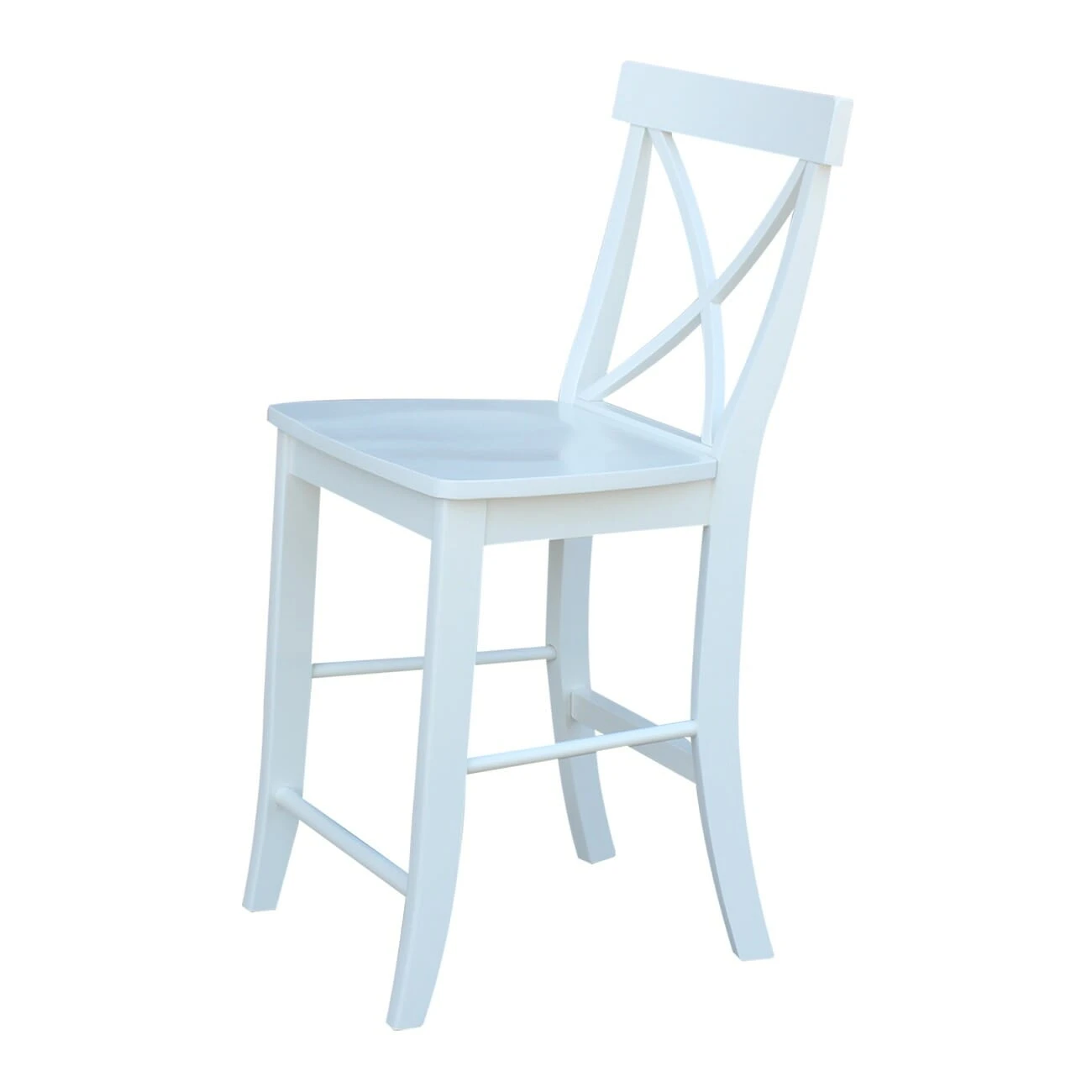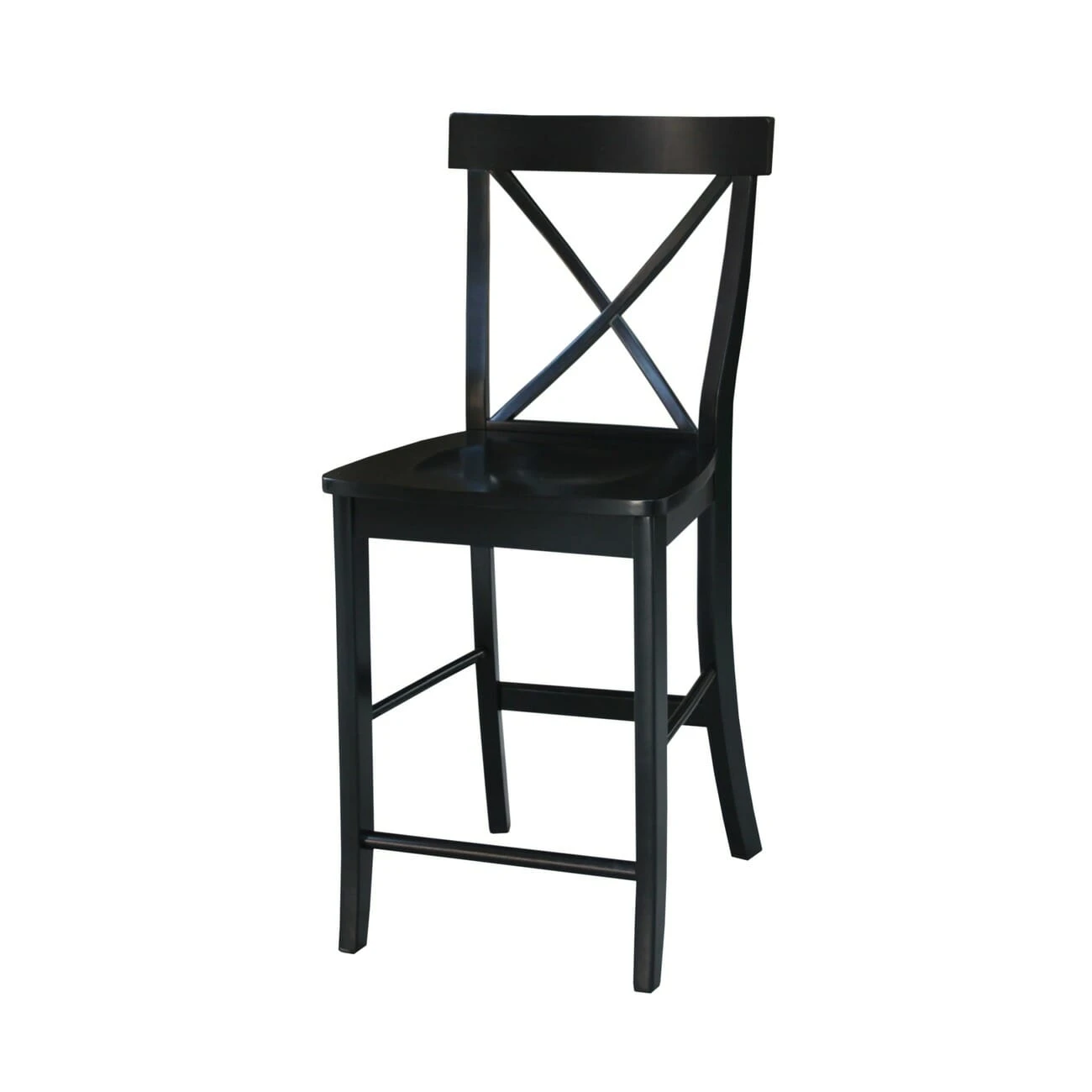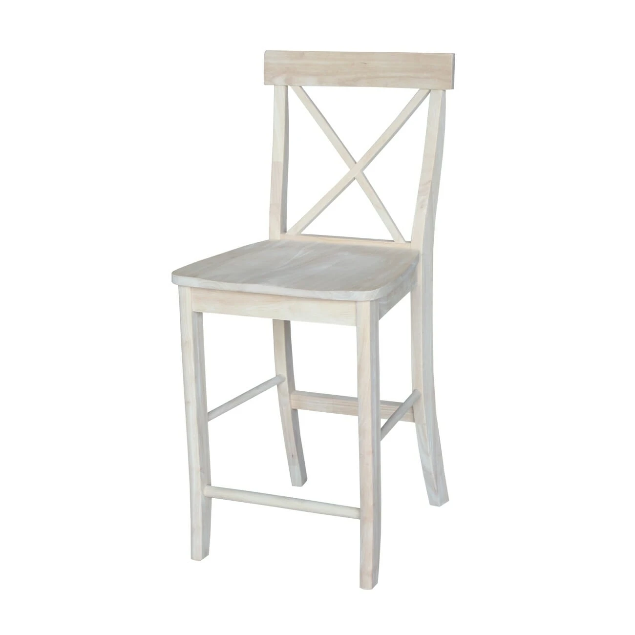 The X Back Counter Stool has a simple, yet elegant X pattern giving this chair a delicate feel. The front legs of the stool have a slight forward angle at the bottom. The 24″ seat height allows this stool to pair well with any 36″ counter or bar table. This stool is made from solid, eco-friendly Parawood in order to ensure strength and durability. Furthermore, the stretchers are both screwed and glued in place to protect your stool from strenuous and everyday use. This counter stool is available unfinished or in your choice of a variety of beautiful factory finishes. It can also be easily stained or painted to match your existing furniture. This stool is also available with an upholstered seat: S-6132-F6.