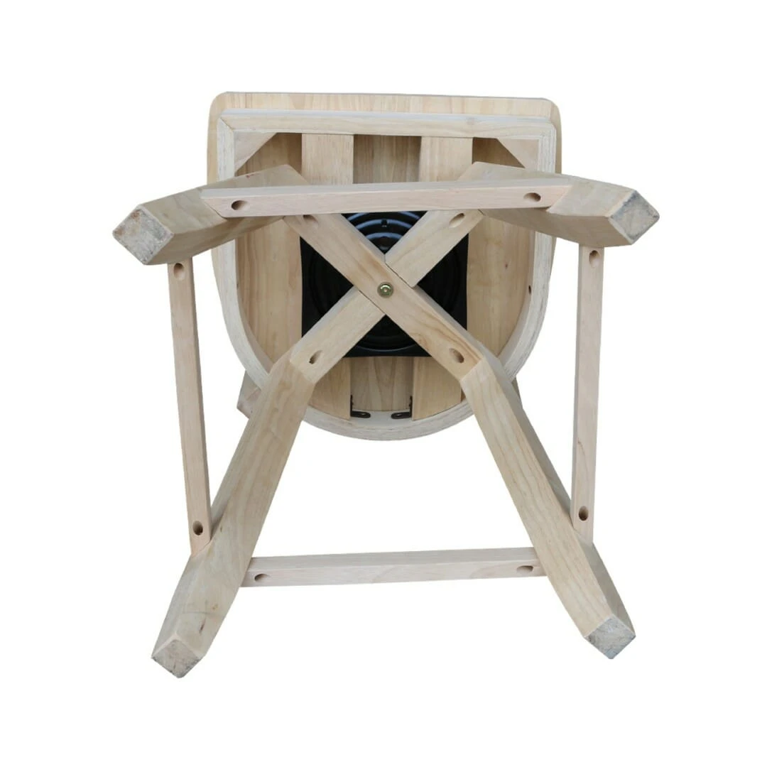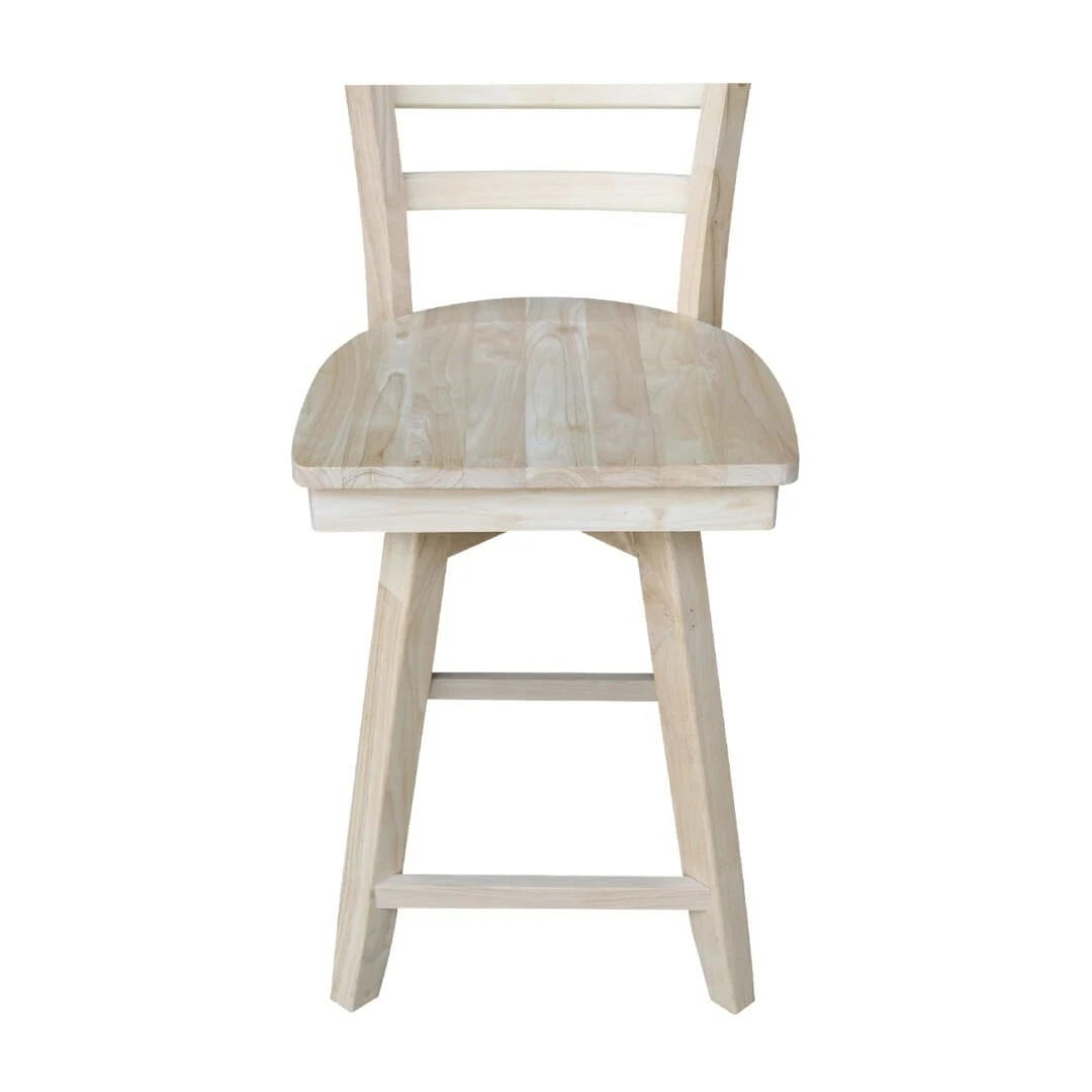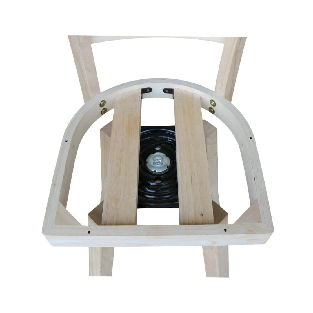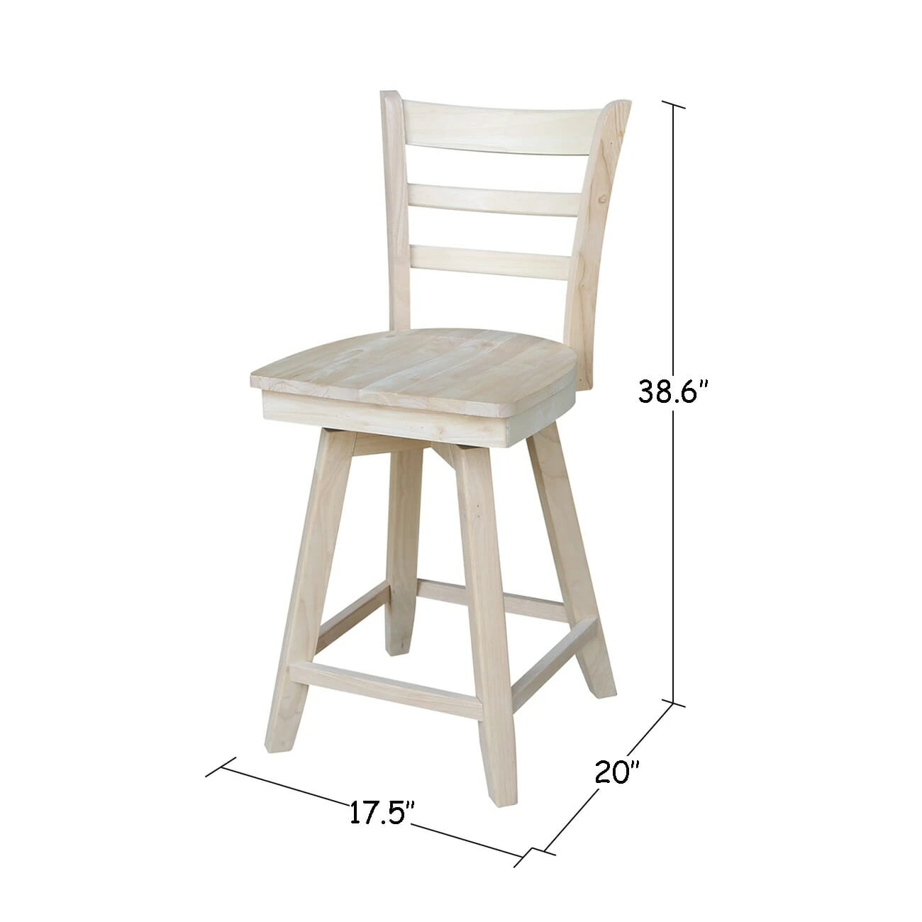 The S-6172SW Emily Counter Swivel Stool offers a classic sophistication and simple design. At 24 inches tall at the seat, this stool is designed to go with a 36-inch tall table or counter. In addition, the heavy duty metal ball bearing swivel seat has a full 360 degree of motion. This stool features a wide upper back with a subtle curved detail that compliments the curved stretcher across the back of the legs. It is made from solid, eco-friendly Parawood in order to ensure strength and durability. Furthermore, the stretchers are both screwed and glued in place to protect your stool from strenuous and everyday use. The Emily counter swivel stool is available unfinished but can be easily stained or painted to match your existing furniture. This stool is also available with a standard seat: Emily Counter Swivel Stool.
