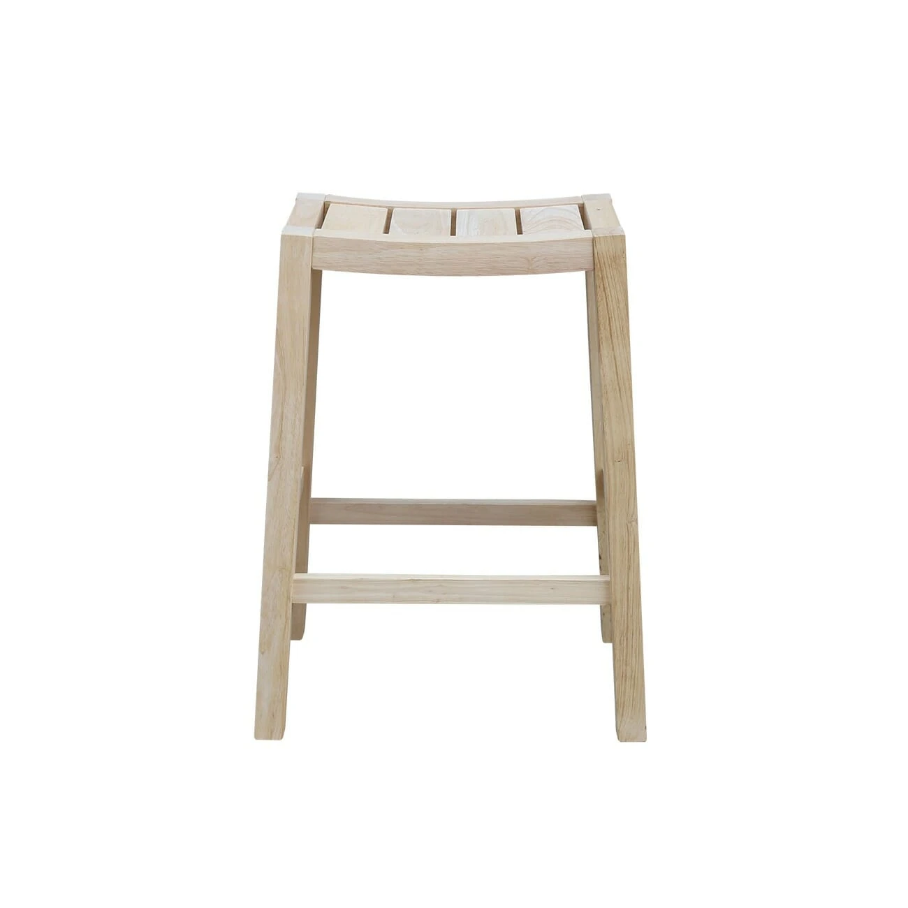 Adding a twist to a traditional design, the S-930 30″ Ranch Bar Stool features a slatted seat. It provides exceptional comfort with a backless and gently curved seat. The wide base provides both stability and comfort and will look great at your 42″ tall kitchen counter or bar. The backless design makes it perfect to use as a storing desk chair or as additional seating around the table. In addition, it is made from solid, eco-friendly Parawood in order to ensure strength and durability. The stretchers are both screwed and glued in place to protect your stool from strenuous and everyday use. The Ranch Bar Stool is available unfinished, but can be easily stained or painted. This stool pairs well with the shorter 24″ Ranch Stool.