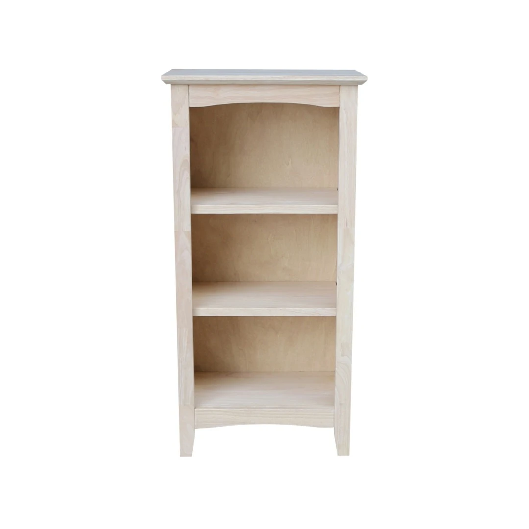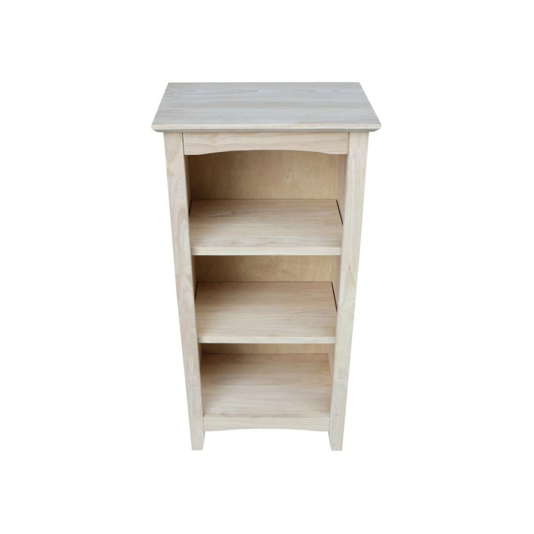 The Shaker 18X36 Bookcase has a clean and classic design that pairs well with any home decor. This solid wood bookcase features a reverse bevel top and a shaker profile face frame. In addition, there are 2 adjustable shelves and 1 bottom shelf, giving you several storage options. This bookcase works well for maximizing storage in a smaller space. Add baskets or bins to create concealed storage, while adding color and interest to this simple piece. Made from solid, eco-friendly Parawood, this Shaker bookshelf offers excellent strength and durability. It is available unfinished, but can be easily stained or painted to match your existing furniture. We also offer several Bookcase Options online, allowing you to find the perfect style and size for your home.