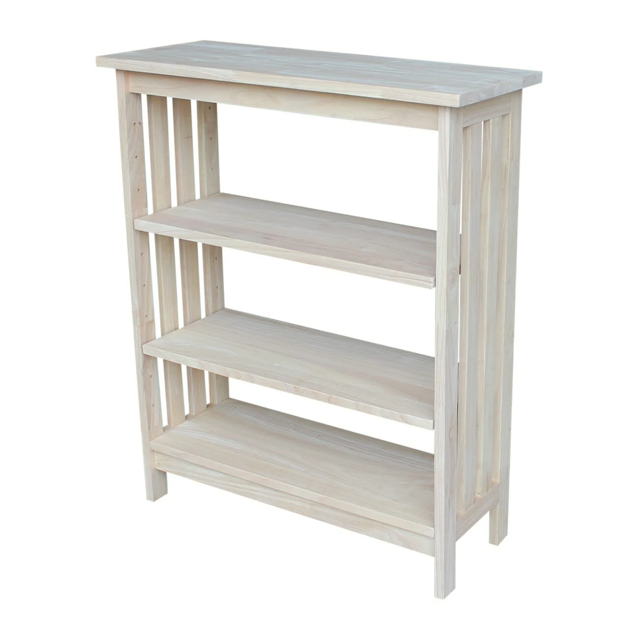This 36″ Tall Mission Bookcase provides the perfect place to display your favorite books and collectibles. The backless design allows you to use this piece against a wall or as a floating bookshelf in an open-concept space. The open back is perfect for smaller spaces as it allows you to see the wall color behind the shelving unit. This solid wood bookcase features 2 adjustable shelves, and one bottom shelf that can be used for additional storage. The slat pattern on both sides adds a mission detail to this otherwise simple design. It is made from solid, eco-friendly Parawood in order to ensure strength and durability. This bookshelf is available unfinished, but can be easily stained or painted to match your existing furniture. To view several finishing tutorials, visit General Finishes‘ website. The mission bookcase sells disassembled with Free Shipping.