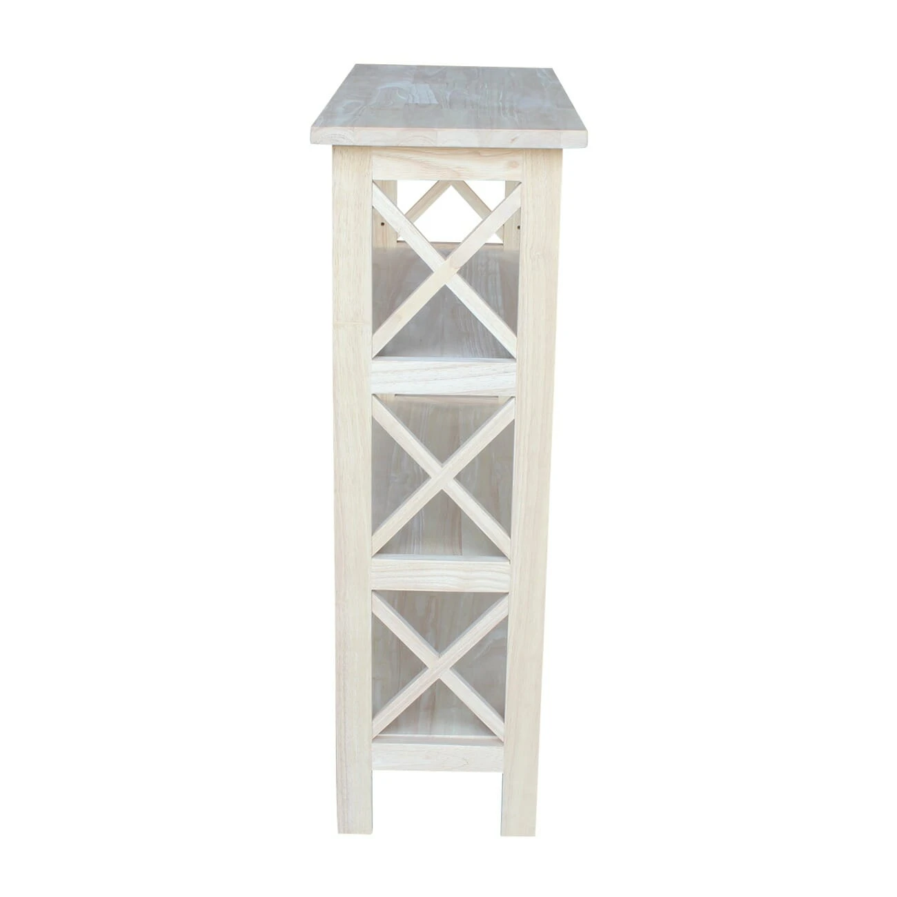 This 36″ Tall Hampton Bookcase provides the perfect place to display your favorite books and collectibles. The backless design allows you to use this piece against a wall or as a floating bookshelf in an open-concept space. The open back is perfect for smaller spaces as it allows you to see the wall color behind the shelving unit. This solid wood bookcase features two adjustable shelves, and one bottom shelf that can be used for additional storage. The X pattern on both sides adds a subtle detail to this otherwise simple design. It is made from solid, eco-friendly Parawood in order to ensure strength and durability. This bookshelf is available unfinished, but can be easily stained or painted to match your existing furniture. To view several finishing tutorials, visit General Finishes‘ website. The Hampton bookcase is sold disassembled, with Free Shipping.