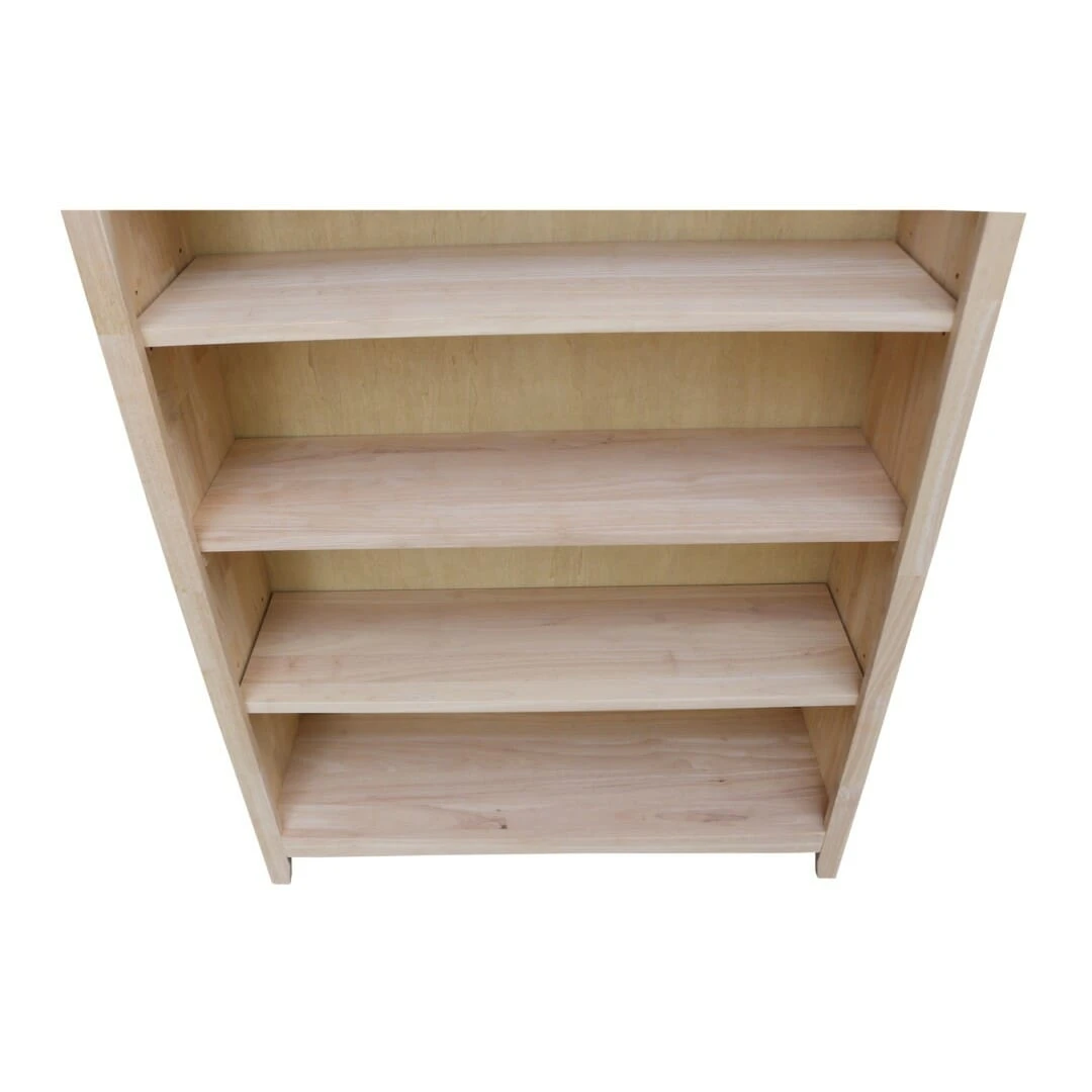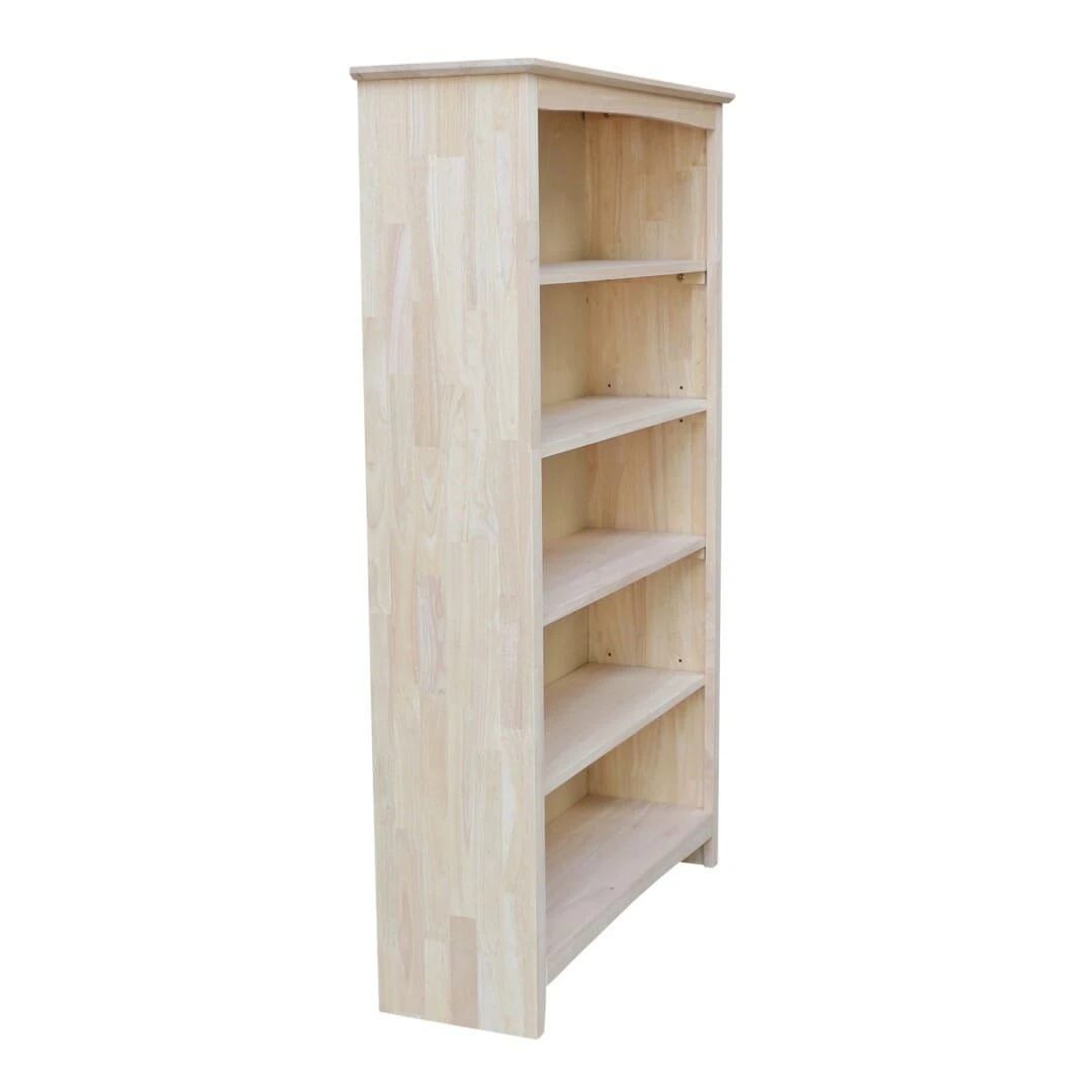 The Shaker 38X60 Bookcase has a clean and classic design that pairs well with any home decor. This solid wood bookcase features a reverse bevel top and a shaker profile face frame. In addition, there are 3 adjustable shelves and 1 fixed shelf, and one bottom shelf, giving you several storage options. This bookcase works well for maximizing storage in a smaller space. Add baskets or bins to create concealed storage, while adding color and interest to this simple piece. Made from solid, eco-friendly Parawood, this Shaker bookshelf offers excellent strength and durability. It is available unfinished, but can be easily stained or painted to match your existing furniture. We also offer several Bookcase Options online, allowing you to find the perfect style and size for your home.