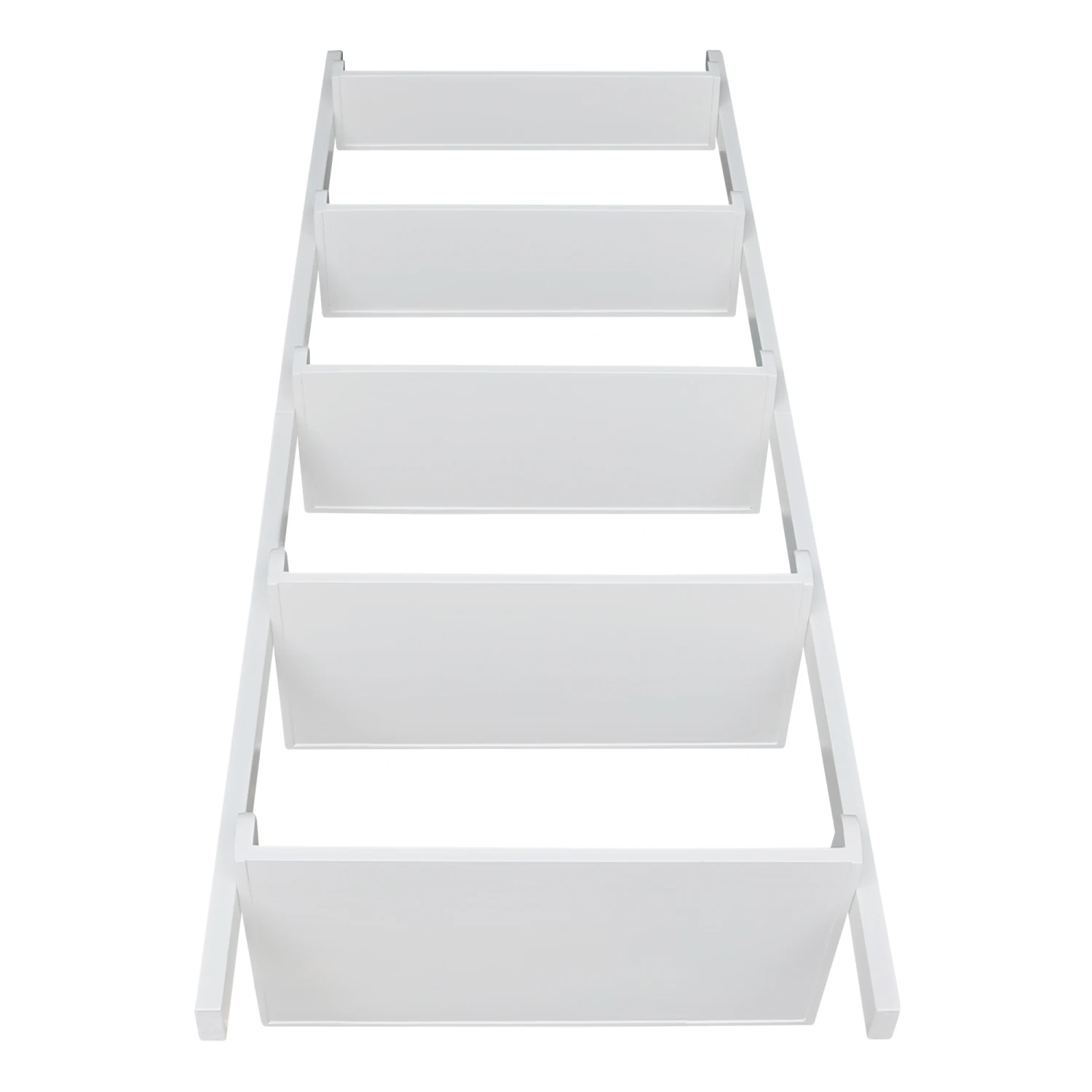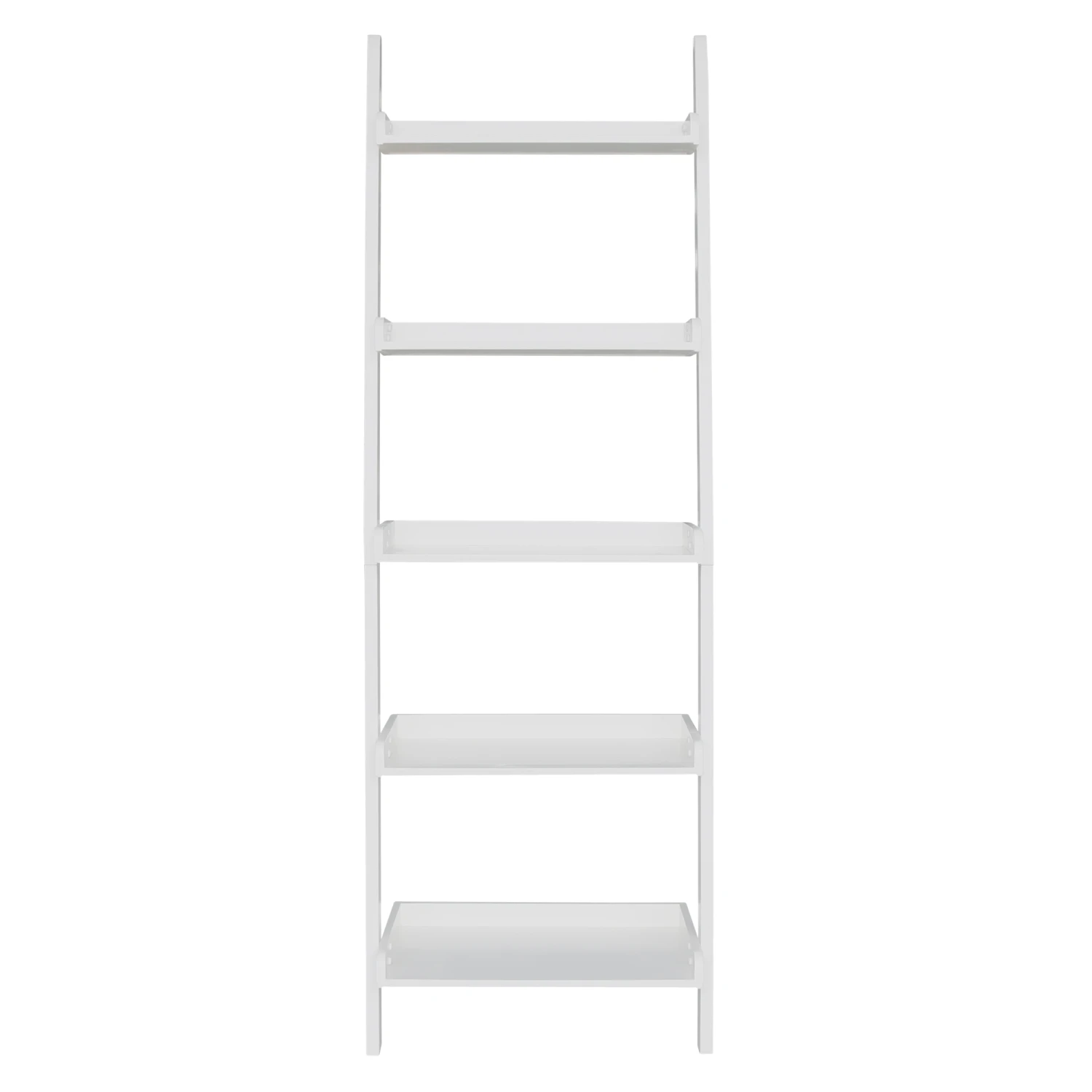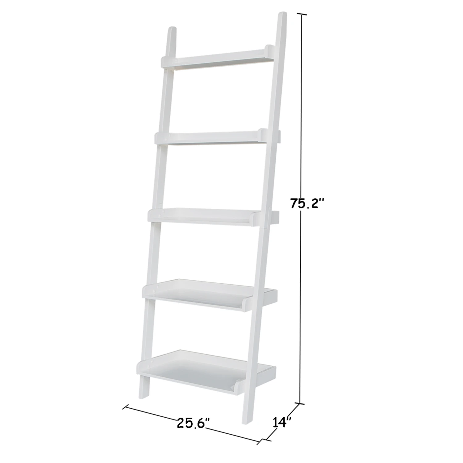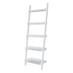 The Wide Accessory Ladder offers a unique way to store and display your favorite items. Use this simple and functional ladder as an accent piece or as leaning shelves. It features five shelves for all of your storage needs. The vertical uprights on this unique, wide accessory ladder bookcase are full length sides. This ladder works perfectly in a living room, but can also be used in any room in your home. Made from solid, eco-friendly Parawood, in order to ensure strength and durability. This ladder ships for FREE. It comes disassembled with a clean White finish. However, it is also available unfinished or in two additional colors: Onyx Black and Espresso.