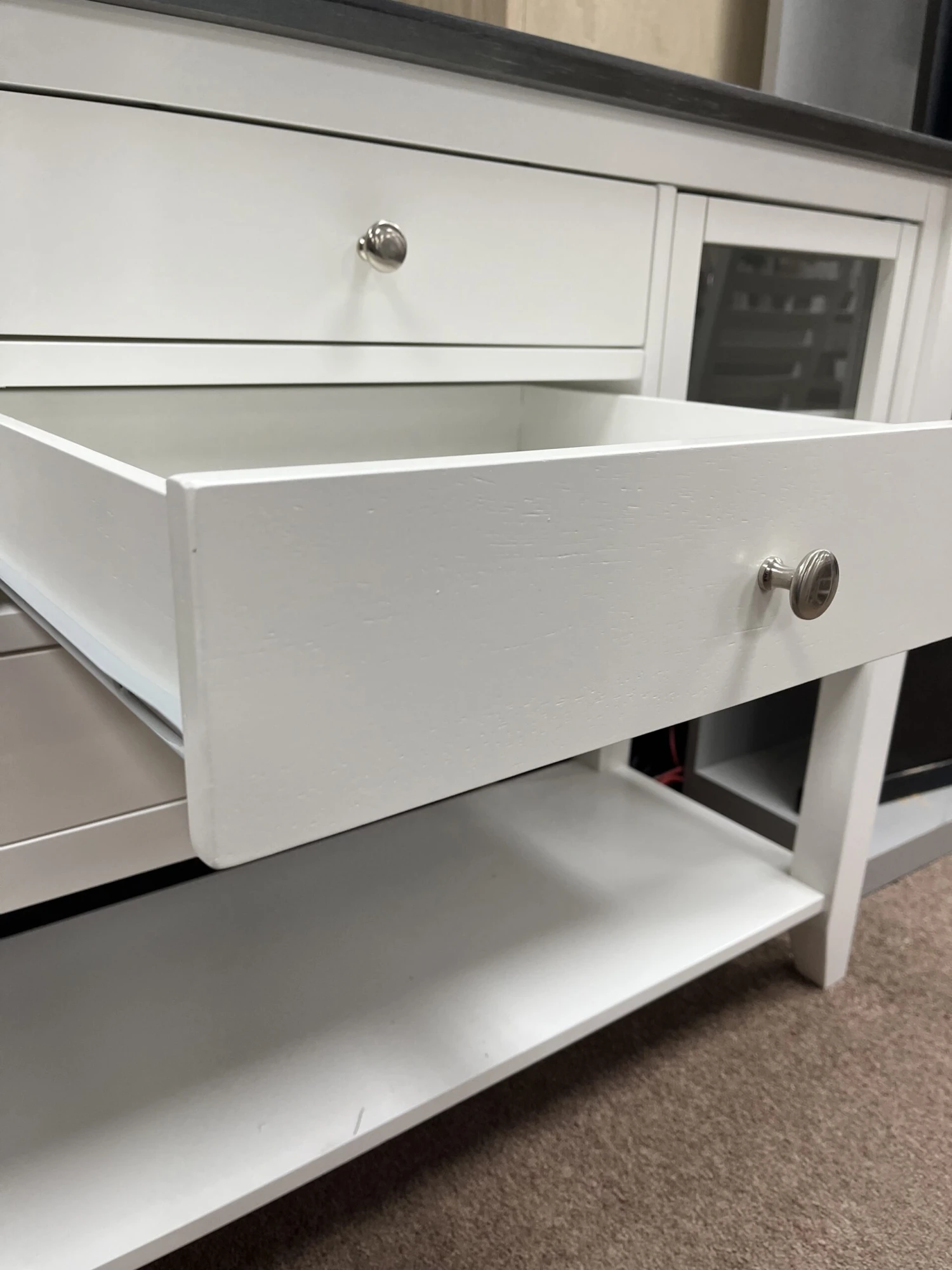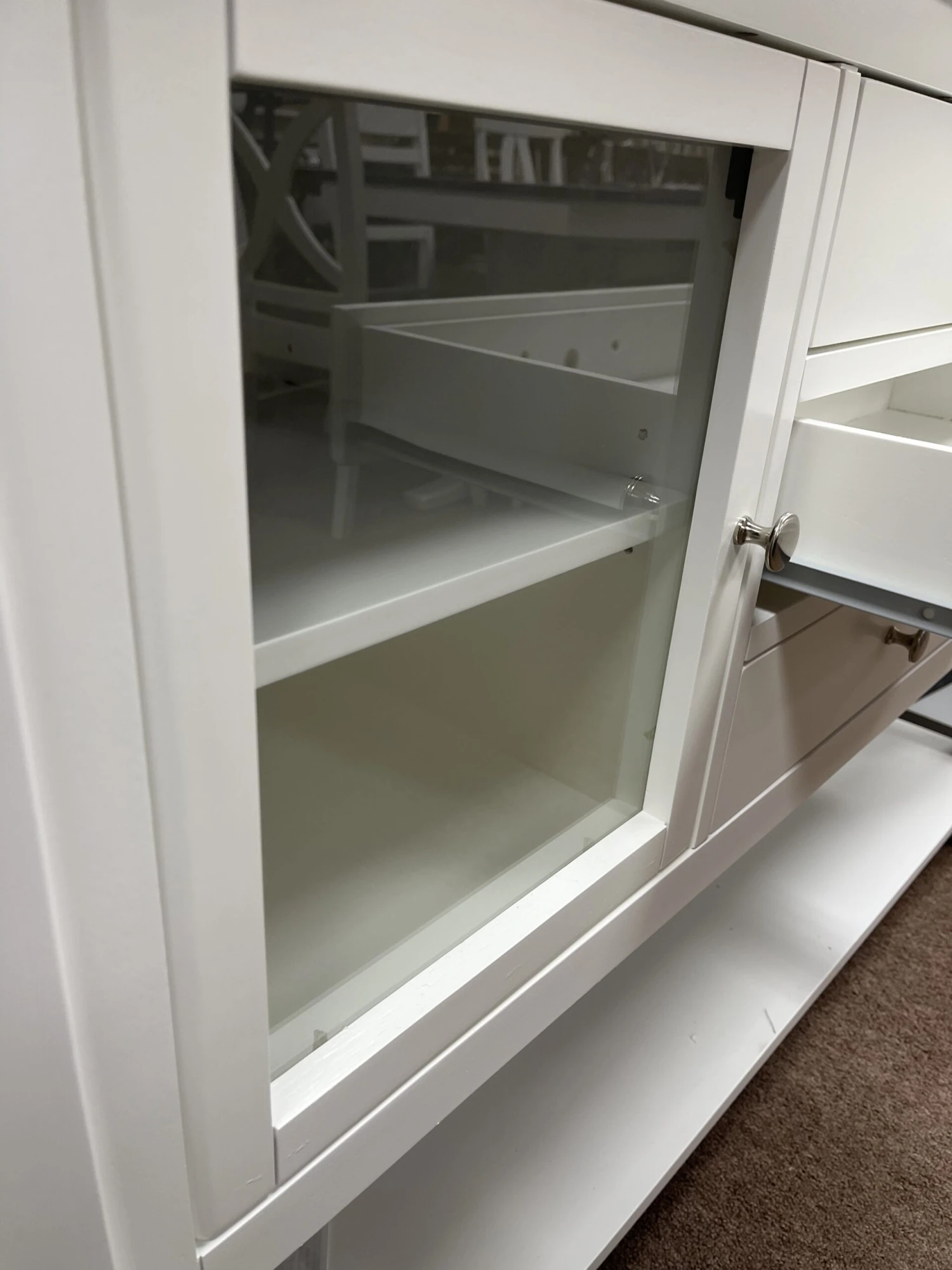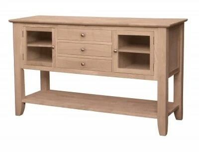The SV-34 Cosmopolitan Server offers simple, clean lines with a traditional style. This server compliments any of the pieces in the Cosmopolitan Collection but also looks great with any decor. It is available unfinished or in your choice of four factory finishes. Enjoy the fine craftsmanship of John Thomas with a server that is beautifully made, long-lasting, and affordable.