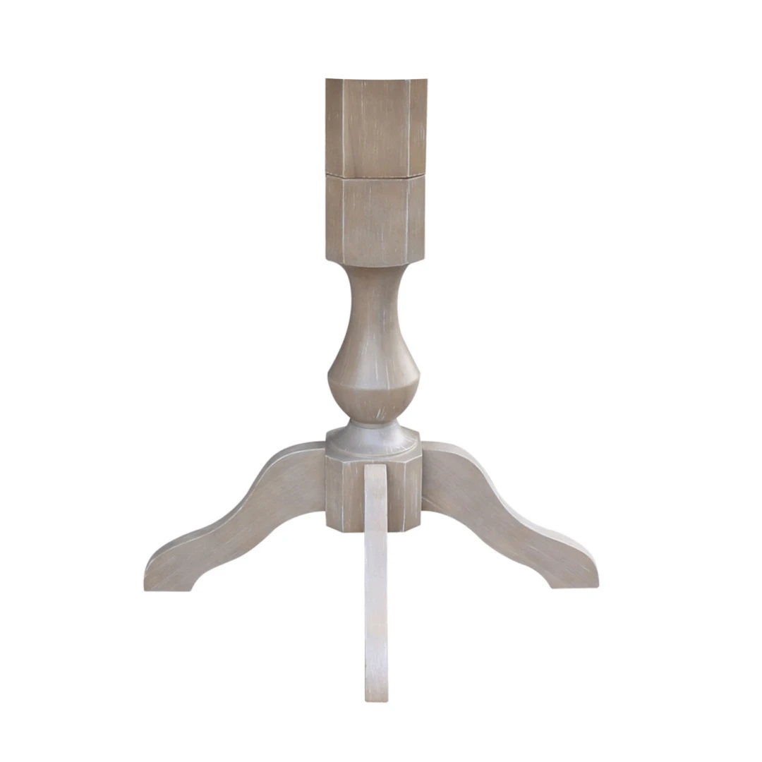 The Joyce Pedestal with Extension offers a subtle, ornate design with gentle curves. It combines perfectly with the T-30RT, T-36RT, or T-42RT tabletops (sold separately). It supports a tabletop that is a maximum of 42-inch in diameter. When paired with a table top, this base sits at counter height of 36″ tall. For dining height at 30 inches tall, see the T-11B Joyce Pedestal. Made from solid, eco-friendly Parawood in order to ensure maximum strength and durability. This base is available unfinished or in your choice of 4 factory finishes. A mounting plate will need to be fabricated to attach the pedestal to your existing table top. In addition, bolts for the mounting plate not included. Click HERE for example of hardware needed.