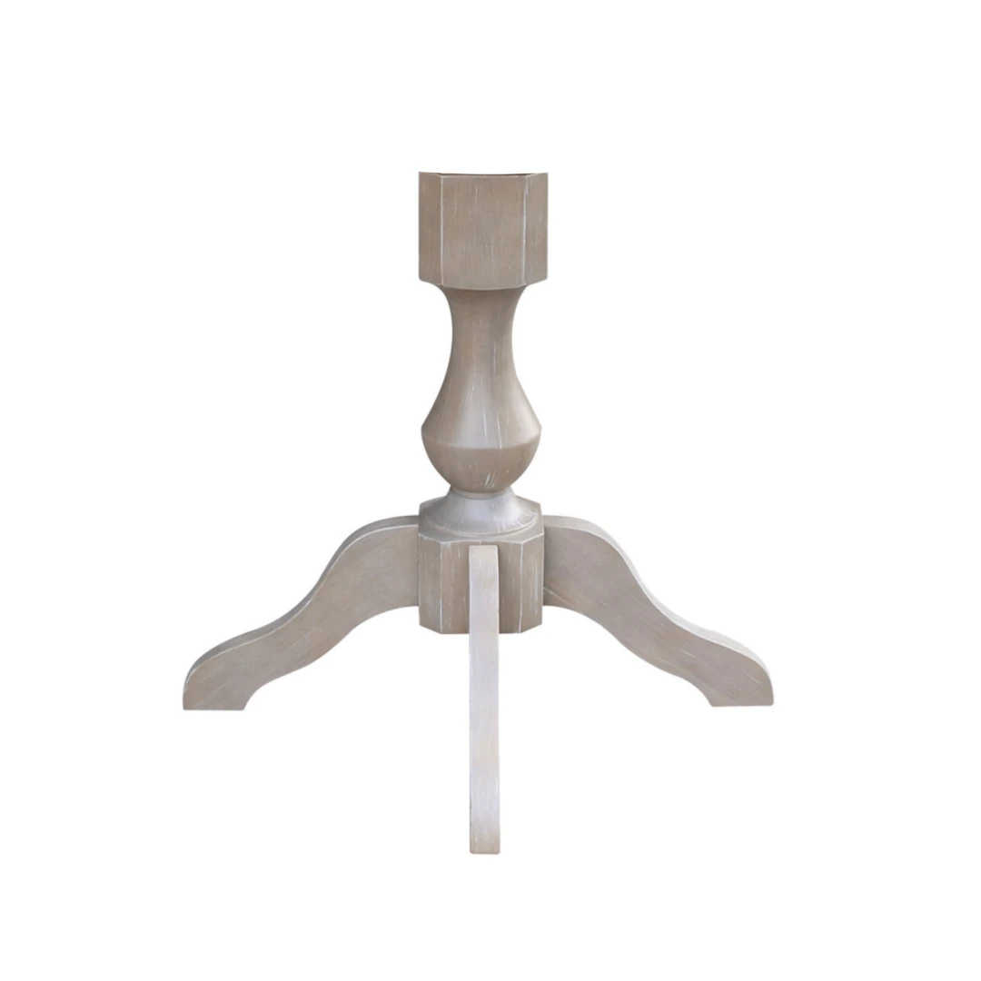 The Joyce Pedestal Base offers a subtle, ornate design with gentle curves. It combines perfectly with the T-30RT, T-36RT, or T-42RT tabletops (sold separately). It supports a tabletop that is a maximum of 42-inch in diameter. When paired with a table top, this base sits at standard dining height of 30″ tall. For counter height at 36 inches tall, see the T-11B-11P Joyce Pedestal with 6-inch extension. Made from solid, eco-friendly Parawood in order to ensure maximum strength and durability. This base is available unfinished or in your choice of 4 factory finishes. A mounting plate will need to be fabricated to attach the pedestal to your existing table top. In addition, bolts for the mounting plate not included. Click HERE for example of hardware needed.