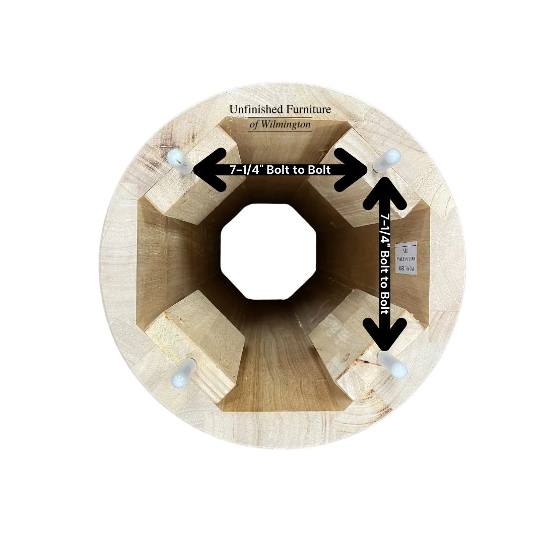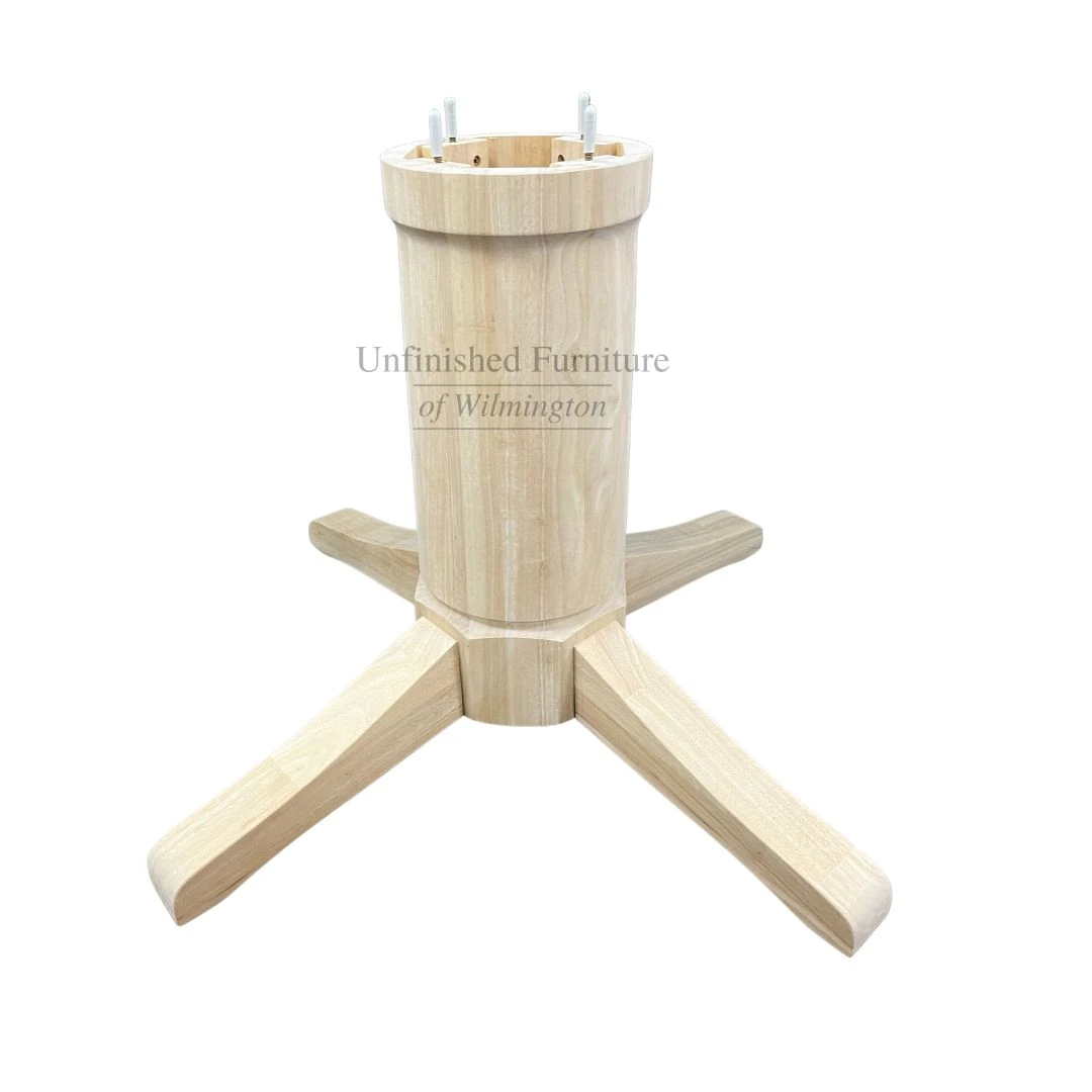 The 10 inch Transitional Table Base features a round pedestal and angular feet. It combines perfectly with our 48″ Round Table, 52″ Round Table, and 60″ round table. In addition, you can pair this pedestal base with you existing table top for a custom creation. Add 18-inch chairs to create a beautiful dining set. This pedestal base features four studs on the top of the base. Made from solid, eco-friendly Parawood in order to ensure maximum strength and durability. A wood plate and uprights will also need to be fabricated to attach the pedestal to your existing table top.