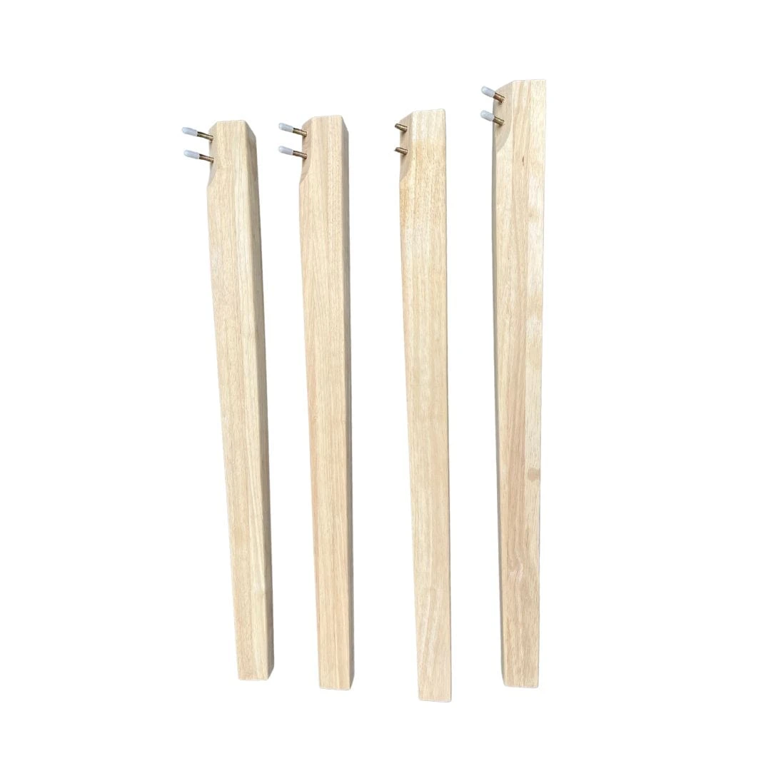 Made from solid, eco-friendly Parawood, the Tapered Shaker Legs offer strength and durability for years to come. This kit includes four legs, one for each corner of your table. In the traditional shaker style, two sides of the legs are straight, while the other two sides are cut to a slight taper. The four legs measure 2-1/4 inches thick and are 35 1/4″ inches in total height. These sturdy legs are designed to fit tables that are no larger than 54 x 54 inches wide. For larger tables, we recommend the T-73G legs. These legs feature 2 M8 studs at the top which attach to the skirt of the table. This kit also includes all necessary nuts and washers.