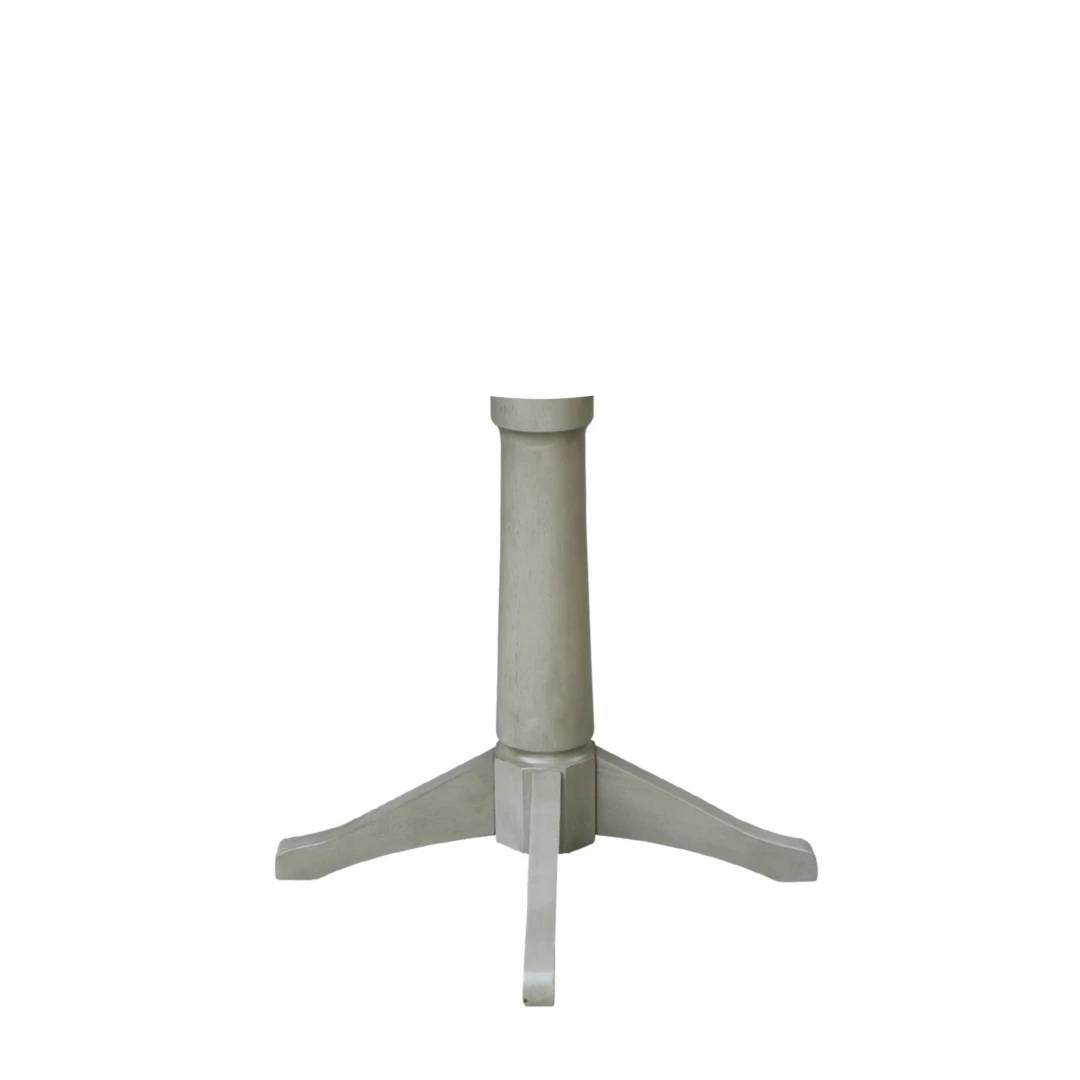 The 6″ Transitional Pedestal with Extension features a round pedestal and angular feet. It combines perfectly with the T-30RT, T-36RT, or T-42RT tabletops (sold separately). It supports a tabletop that is a maximum of 42-inch in diameter. When paired with a table top, this base sits at standard dining height of 30″ tall. For counter height at 36 inches tall, see the T-27B-6P Transitional Pedestal with 6-inch extension. Made from solid, eco-friendly Parawood in order to ensure maximum strength and durability. This base is available unfinished or in your choice of 8 factory finishes. A mounting plate will need to be fabricated to attach the pedestal to your existing table top. In addition, bolts for the mounting plate not included. Click HERE for example of hardware needed.
