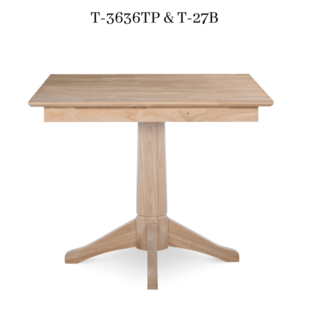 Model number T-3636TP 36 x 36 Square Table by International Concepts from Whitewood Industries